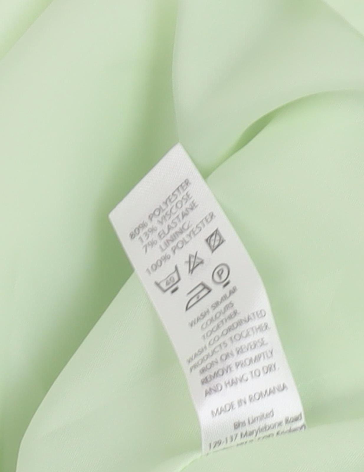 Elevate your wardrobe with this elegant green mini skirt, perfect for both casual and semi-formal occasions. Made from a soft and durable blend of polyester, viscose, and elastane, this skirt offers a comfortable fit with a touch of stretch. Its knee-length cut and classic green hue make it a versatile addition to any outfit, effortlessly pairing with tops of any colour. The skirt features an elastic waist and a secure zip closure, ensuring both comfort and style for all-day wear. Designed for women who appreciate timeless fashion, this skirt is also practical with easy garment care instructions. Despite a minor stain on the fabric, the skirt remains in good condition, ready to accompany you on a variety of outings. Ideal for all seasons, whether you're heading to work, a weekend brunch, or an evening event. Don't miss the chance to add this stylish piece to your collection today.