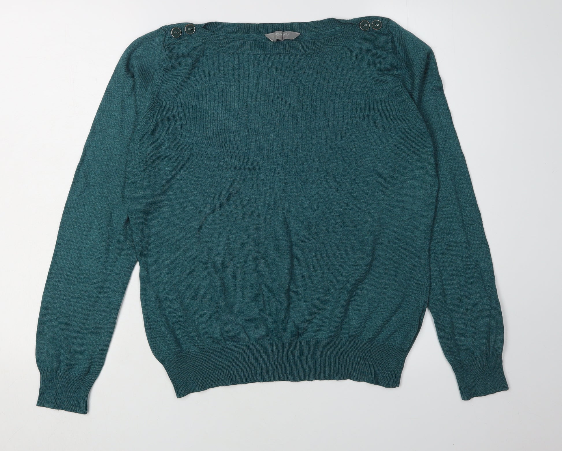 Elevate your wardrobe with this chic BHS Women's Green Pullover Jumper, perfect for adding a touch of elegance to your casual ensemble. Designed in a comfortable size 12, this jumper features a sophisticated boat neck and long sleeves, making it ideal for the cooler months of autumn and winter. The green colour adds a splash of vibrancy to your outfit, while the tight-knit style and button accents on the shoulders contribute to its unique appeal.Crafted from a quality blend of 65% acrylic, 20% nylon, and 15% wool, this jumper offers a delightful balance of warmth and comfort. Its knit fabric type further ensures a snug fit that beautifully complements your silhouette. Although it's in excellent condition without tags, this BHS jumper promises durability and a timeless style.Perfect for casual occasions, this regular fit jumper can effortlessly transcend from day to evening wear. Pair it with your favourite jeans for a laid-back look or dress it up with a stylish skirt for a night out. The versatility of this jumper makes it a must-have addition to any fashion-savvy woman's wardrobe.Whether you're stepping out for a casual lunch or heading to a cozy coffee date, this BHS pullover jumper will keep you looking on-trend and feeling comfortable. Don't miss the chance to own this wardrobe essential that blends quality, comfort, and style seamlessly.