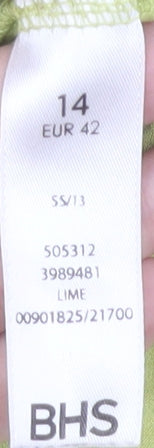 Discover a perfect blend of comfort and elegance with this BHS Women's Green Sleeveless Tank Top, tailored for those relaxed summer outings or casual spring affairs. Crafted from a smooth mix of 92% viscose and 8% elastane, this top offers a soft, stretchy feel ideal for all-day wear. The stunning solid green hue is sure to make a stylish statement, easily pairing with a variety of colours and patterns in your wardrobe. Its classic round neckline and sleeveless design ensure breathability and freedom of movement, keeping you cool and comfortable during warm weather. With a regular fit, this tank top flatters a variety of body types while retaining effortless mobility. Lightweight and easy to care for, it’s designed for modern living, allowing for simple machine washes. Despite its gently worn appearance, indicated by minor wrinkles, this top maintains excellent condition, offering great value for any fashion-conscious woman. Whether teamed with jeans for a casual look or dressed up with skirts and accessories for a chic appearance, this BHS tank promises versatility and charm. Start making your daily dressing simpler yet fashionable by adding this essential piece to your wardrobe today!