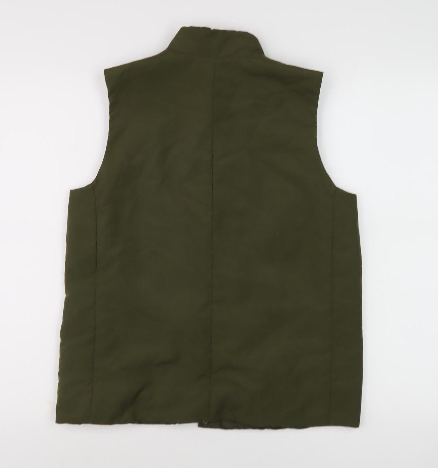 Introducing the BHS Women's Green Sleeveless Waistcoat in size 10, a versatile and stylish addition to any wardrobe. Crafted with a clean and classic design, this waistcoat offers both comfort and style without compromising on practicality. The deep green shade brings an element of elegance and can complement a variety of outfits, making it perfect for both layering and standalone wear. Whether you're stepping into the office or heading out for a casual outing, this waistcoat ensures you stay fashionable. Its sleeveless design makes it ideal for warmer days or for pairing with long-sleeve tops during cooler seasons. Though the waistcoat lacks original sales tags, it remains in excellent condition, with only minor marks that don't detract from its overall appeal. Versatile enough for various occasions, this piece is sophisticated yet understated. Make it a staple in your wardrobe and enjoy the effortless chic it brings to your everyday style. Don't miss out on this timeless piece that's as practical as it is elegant.
