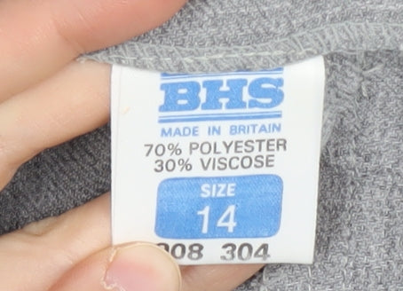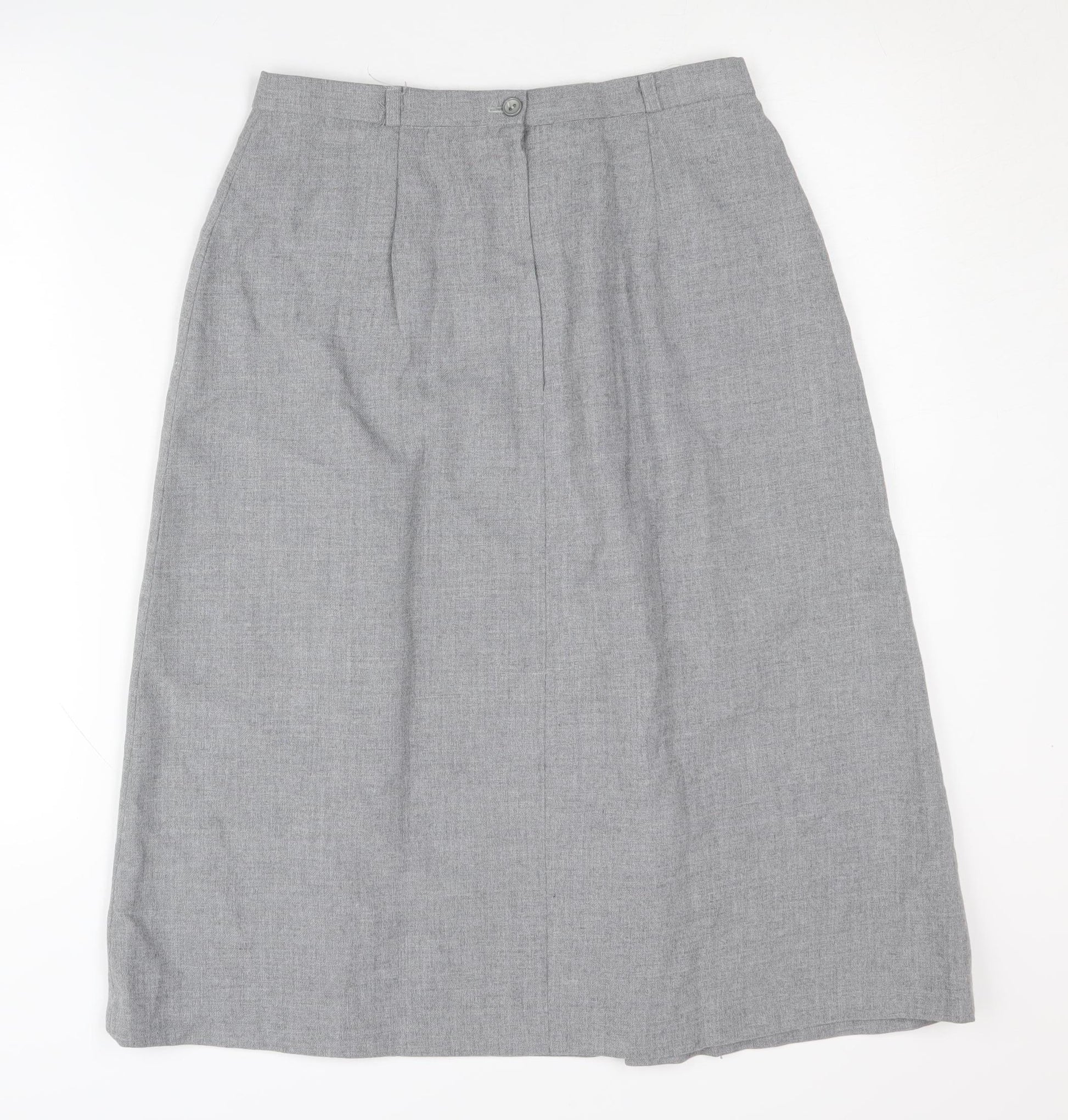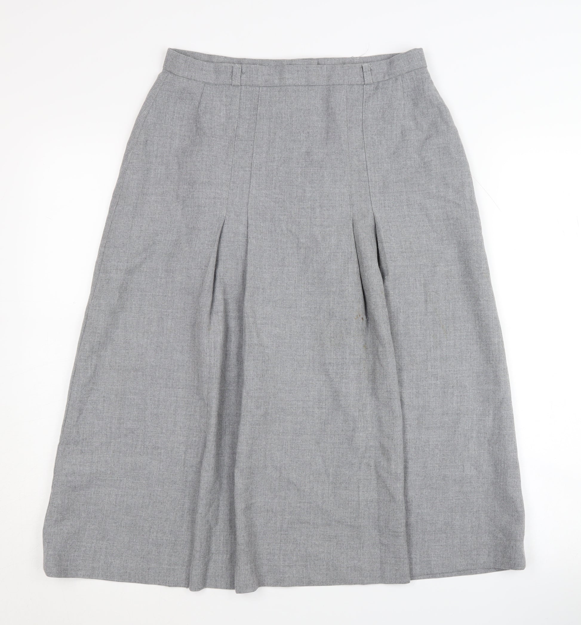 Step out in style with this vintage BHS pleated midi skirt, perfect for any casual occasion. Crafted from a comfortable blend of polyester and viscose, this skirt features a timeless grey tone, ensuring it pairs effortlessly with any wardrobe. The skirt is designed with a flattering pleated style, offering both movement and elegance. Ideal for women seeking a blend of classic design and contemporary comfort, this skirt will become a staple in your collection. Please note, it is in good condition, reflecting some visible wear with minor stains, which only add to its vintage charm. Waist button closure provides convenience and ease of wear. Embrace the look and feel of yesteryear with a modern twist in this versatile piece.