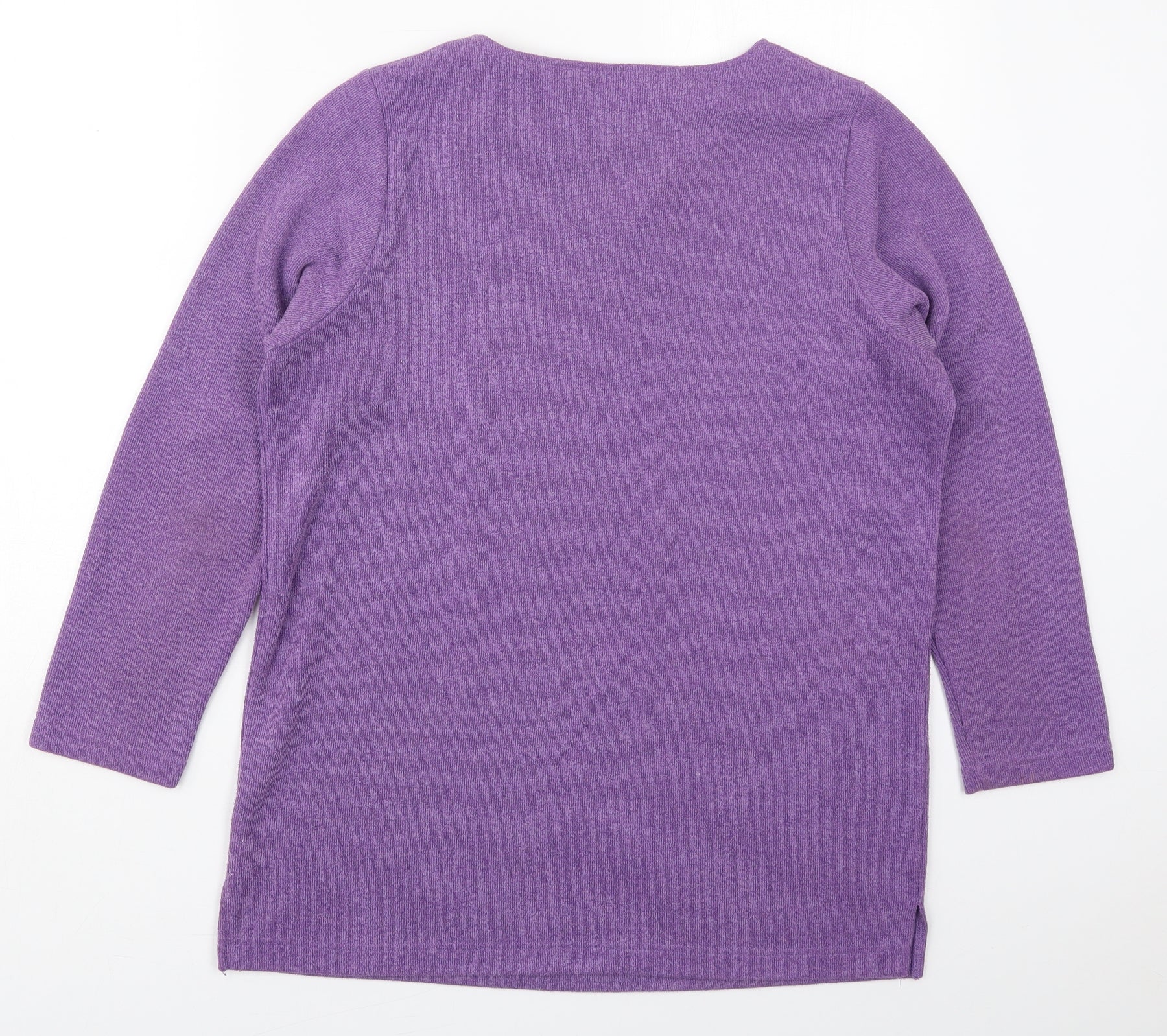 Womens Purple Polyester Basic T-Shirt Size 12 V-Neck