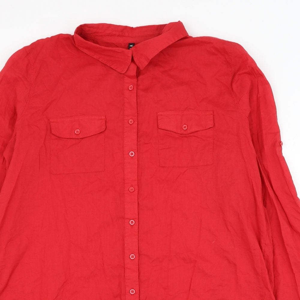 Womens Red Cotton Basic Button-Up Size 16 Collared