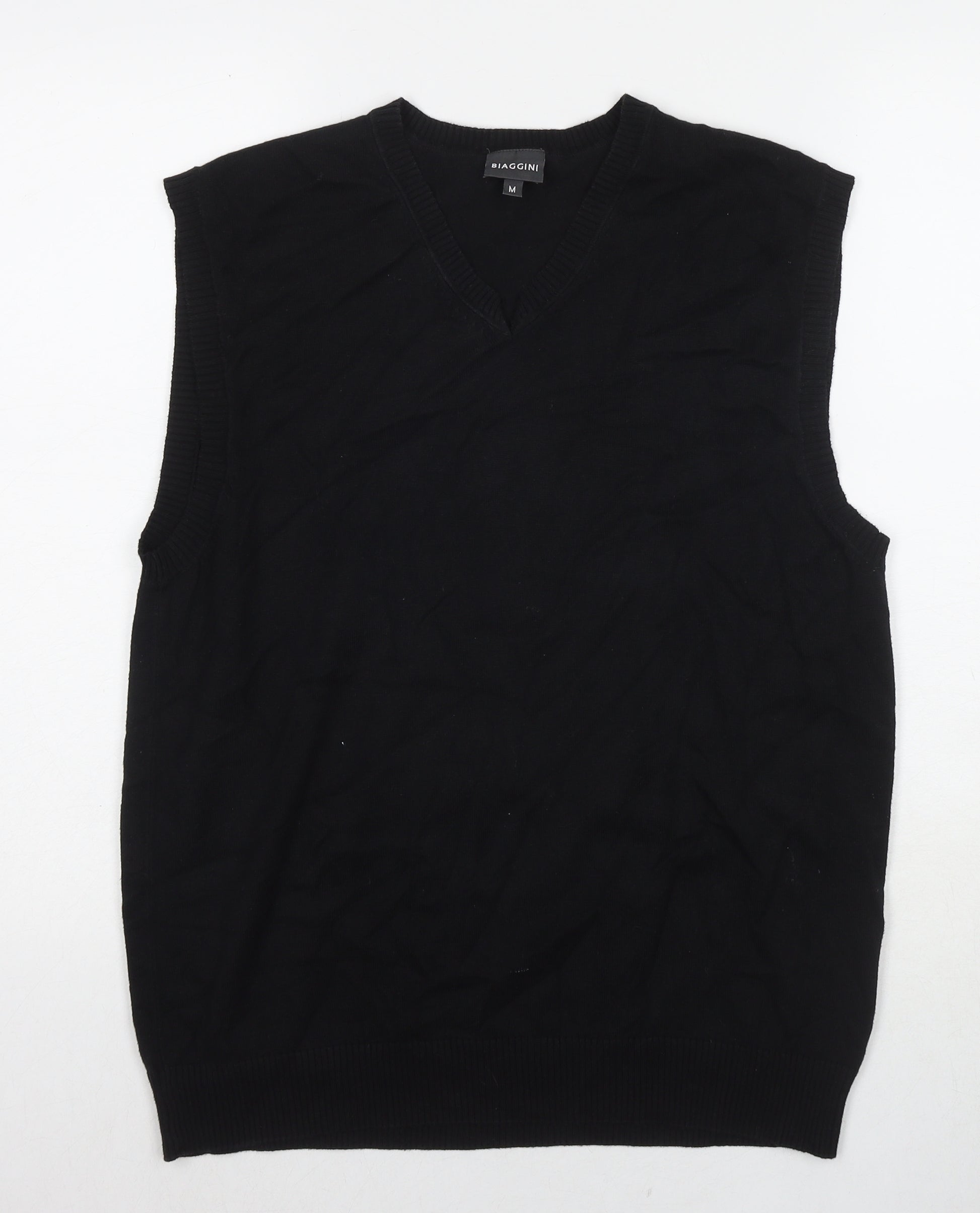 Mens Black Round Neck Cotton Pullover Jumper Size M Sleeveless