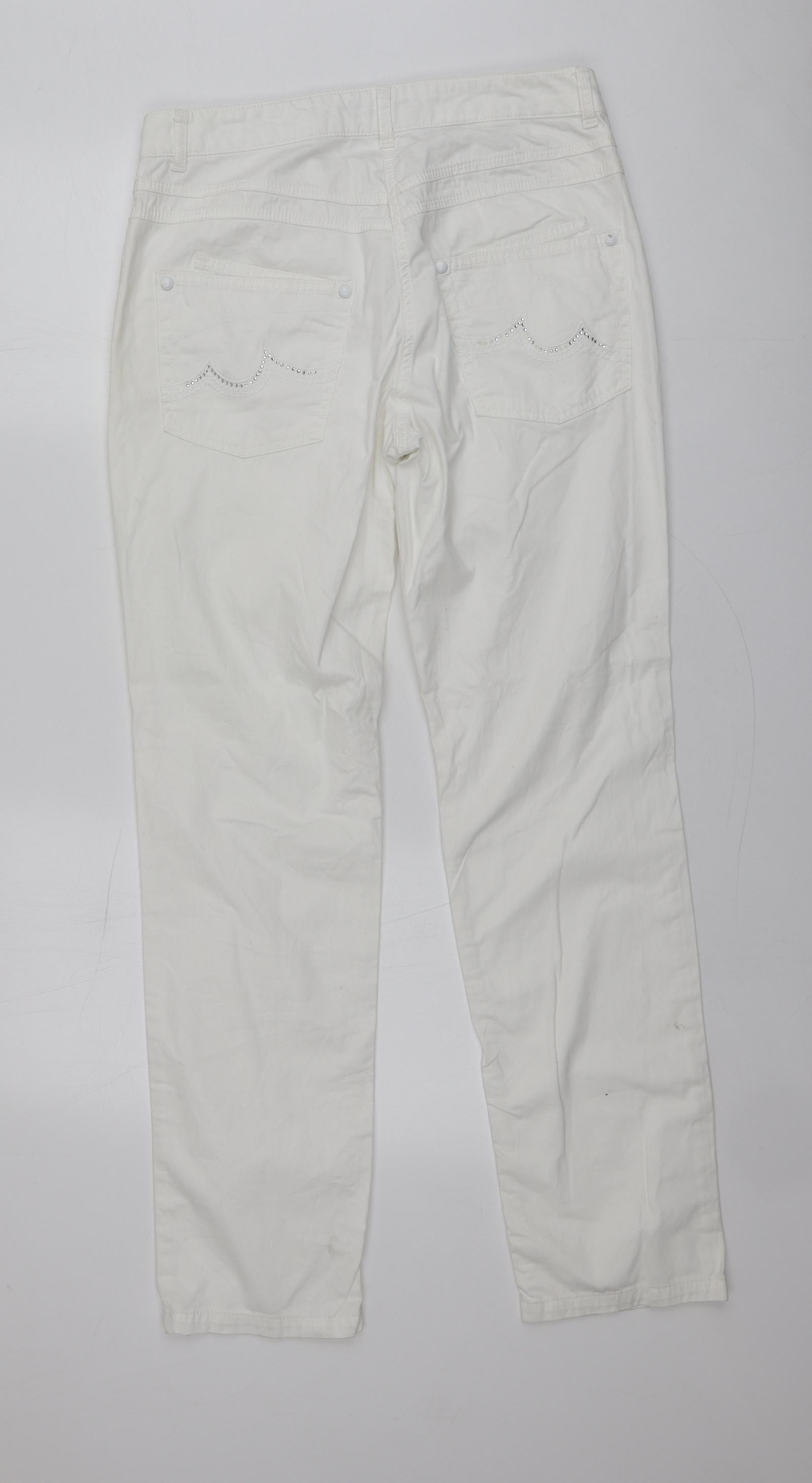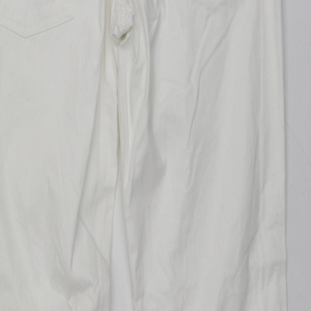 Womens White Cotton Trousers Size 14 L31 in Regular