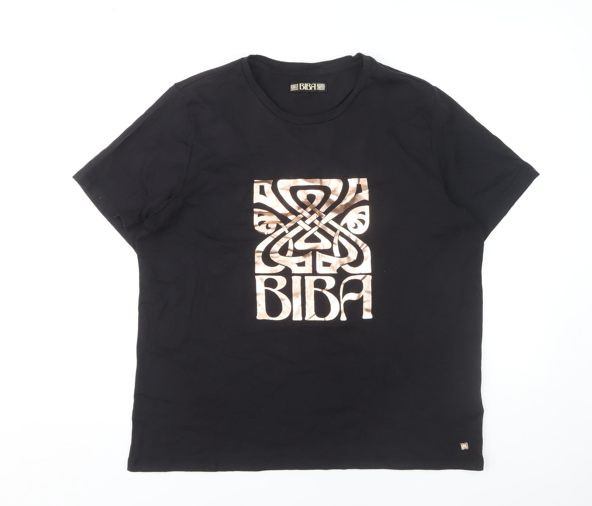 BIBA Women's Black T-Shirt, Size 16, Crew Neck, Casual