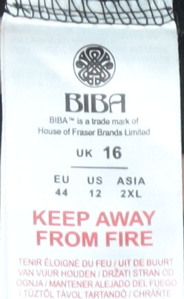 Step out in style with this chic BIBA women's T-shirt in classic black. Perfect for casual occasions, this T-shirt is designed for comfort and effortless fashion. Made from 100% cotton, it assures a soft touch and breathable wear. The crew neck and short sleeves offer a timeless silhouette, while the embroidered BIBA logo adds a stylish accent to your outfit. Designed for a regular fit, this T-shirt provides a flattering look for size 16. Easy to care for, it's machine washable, making it a practical choice for everyday wear. Whether you're dressing down for a relaxed day or adding layers for a casual outing, this BIBA T-shirt is versatile and a must-have in your wardrobe. Don't miss out on this quality piece in pristine condition.