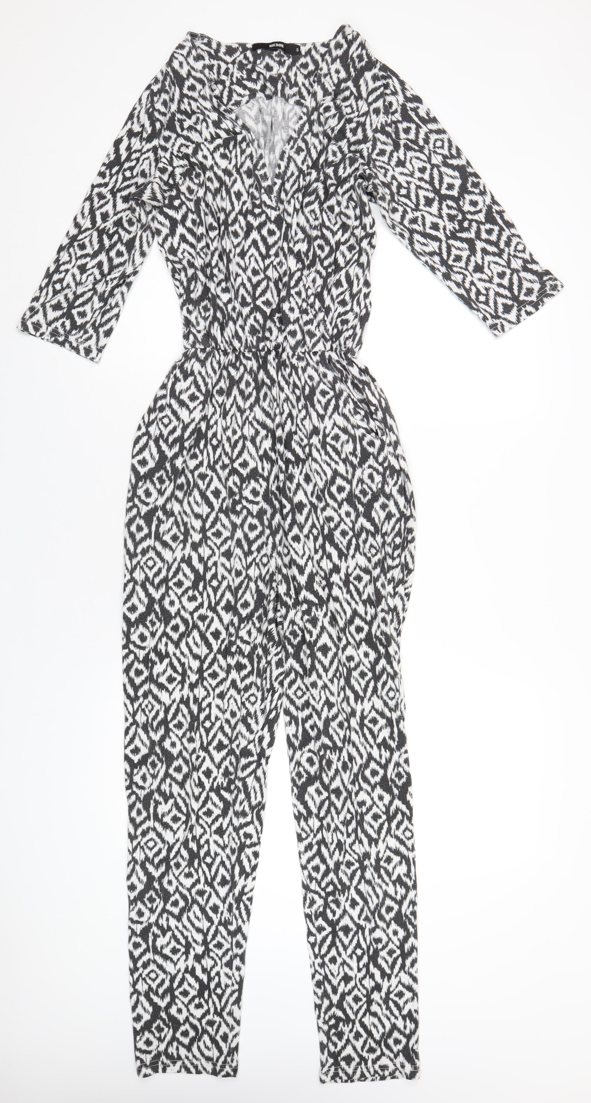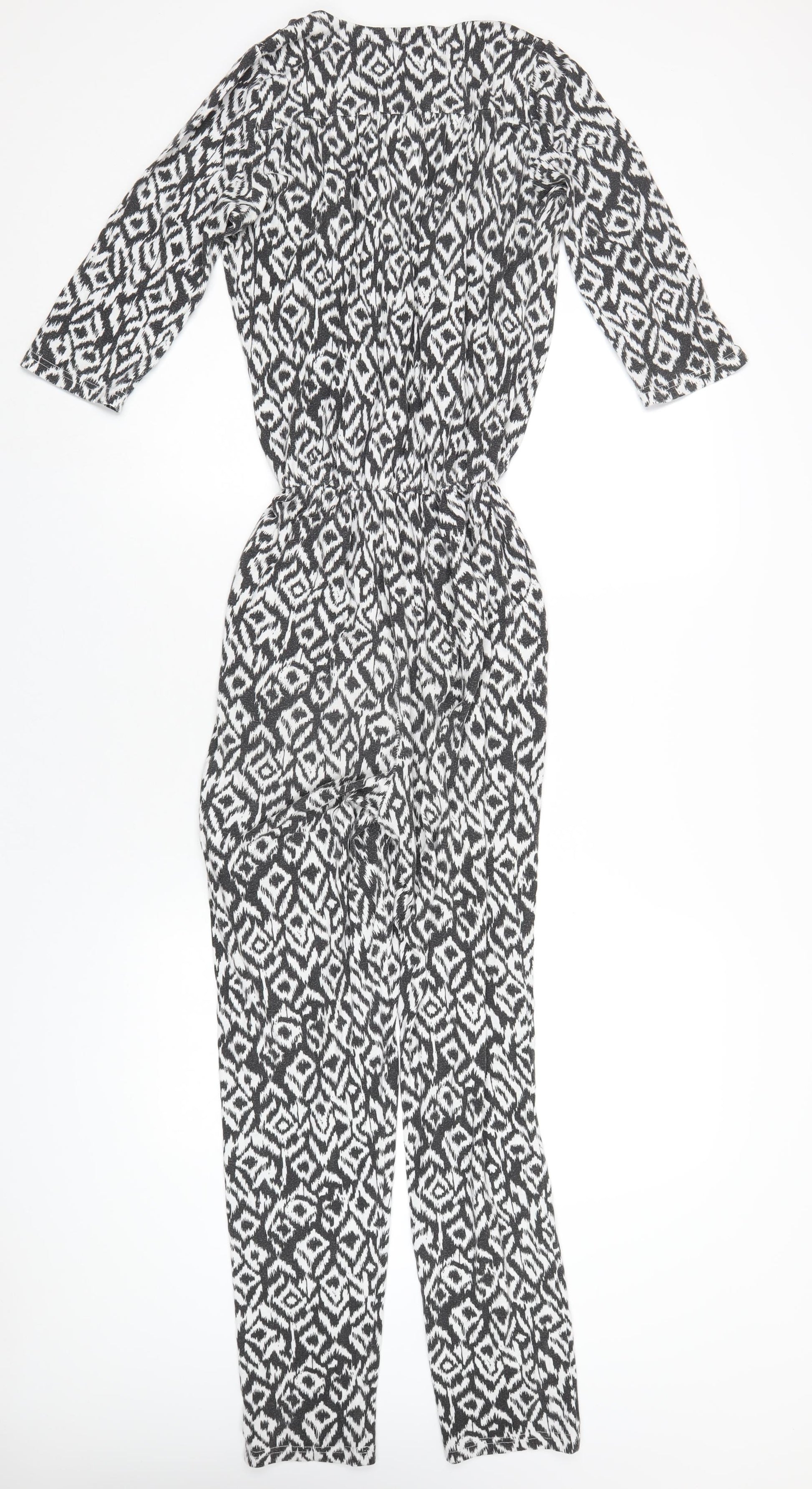 Womens Black Geometric Polyester Jumpsuit One-Piece Size S L30 in Pullover