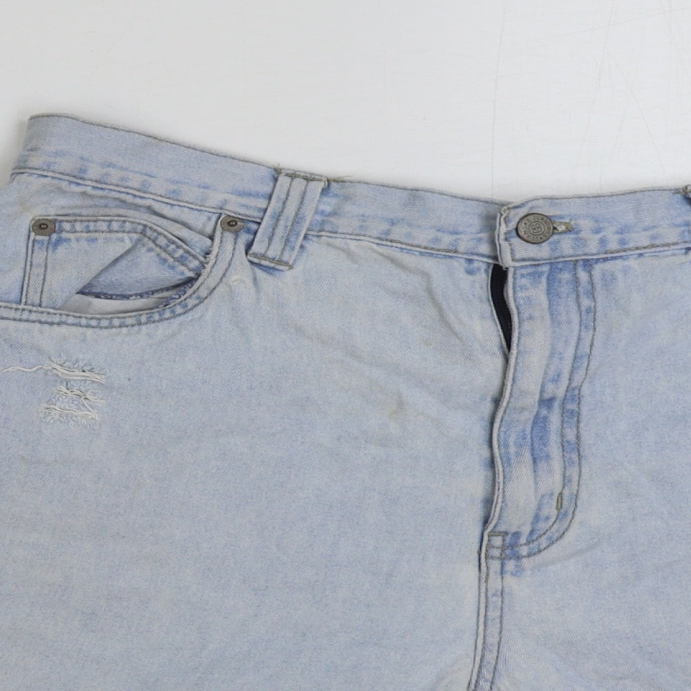 Womens Blue Cotton Bermuda Shorts Size 32 in L7 in Regular Button