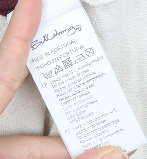 Discover the casual comfort and trendy style of the Billabong Unisex Beige Ringer T-Shirt. This top, available in size XS, brings a laid-back vibe to any wardrobe. Crafted from a soft blend of cotton and polyester, it's perfect for those who seek a breathable and lightweight garment. Featuring 3/4 raglan sleeves in a complementary maroon, this shirt adds a touch of classic style to your collection. The crew neckline offers a relaxed fit, making it ideal for casual wear. With its solid beige body, it pairs easily with jeans, shorts, or skirts for a variety of looks. Designed with a surf club theme, this shirt is not only comfortable but also carries an effortlessly cool aesthetic. Whether you're headed to the beach, a relaxed day out, or simply lounging at home, this is the shirt you'll reach for. Easy to care for and machine washable, it's both practical and stylish, making it a must-have in your wardrobe.