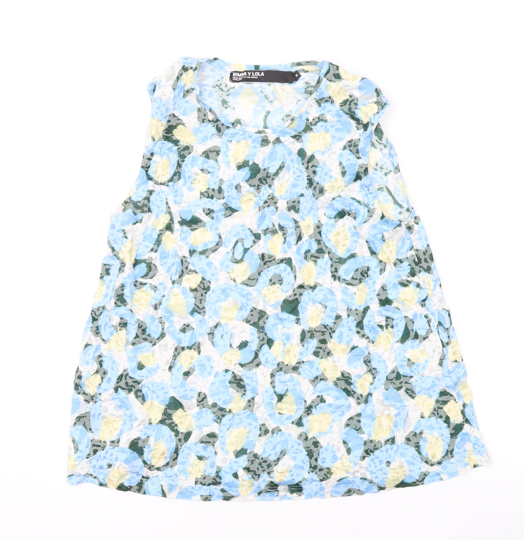 Womens Blue Floral Cotton Basic Tank Size M Round Neck