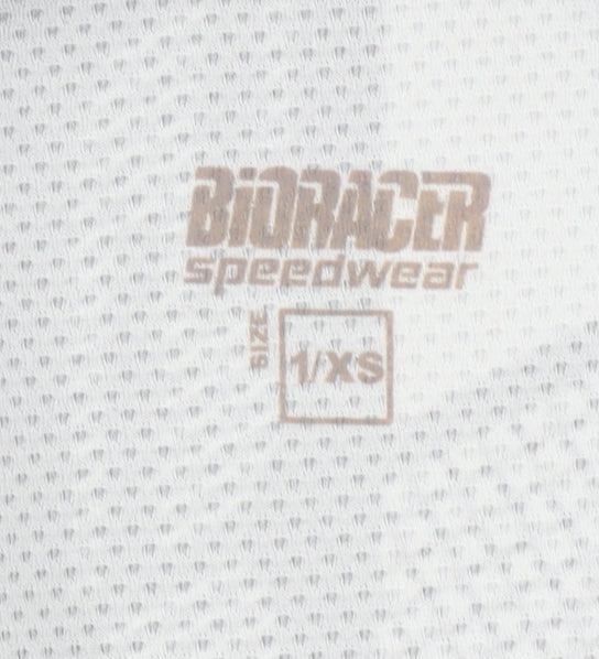 This Bioracer Men's Black Short Sleeve Cycling Jersey is a high-performance activewear top designed for serious cyclists seeking comfort, breathability, and aerodynamic style. Made from a premium blend of 80% polyester and 20% elastane, it offers excellent moisture-wicking and quick-drying properties to keep you cool and dry on long rides. The lightweight mesh structure enhances ventilation, while the ergonomic construction provides a slim, athletic fit that contours to your body for optimal performance. Featuring a full front zip for easy temperature control, this jersey also includes a stand-up collar for added protection from wind and sun. The back panel has practical pocket sections — perfect for energy gels or small essentials on your ride. The design includes bold graphic print logos from Bioracer and 'Lanzarote Bike Sensations', giving it a distinctive professional aesthetic. Reflective and logo accents add style while enhancing visibility. The short raglan sleeves allow for a full range of motion, making it ideal for road cycling, spin classes, and endurance training. The high-stretch elastane ensures freedom of movement and a close aerodynamic fit, while the hemline grip keeps the jersey securely in place during rides. This piece is in excellent condition with minimal signs of previous wear, ready to accompany you on your next cycling adventure. Perfect for warm-weather cycling, racing, or general activewear, this Bioracer jersey combines professional-grade design with comfort and function. Whether you are commuting to work or participating in competitive rides, it’s a reliable and stylish choice that delivers both functionality and sleek design. A must-have for performance-oriented cyclists looking for durable and pro-quality gear without compromising comfort or breathability.