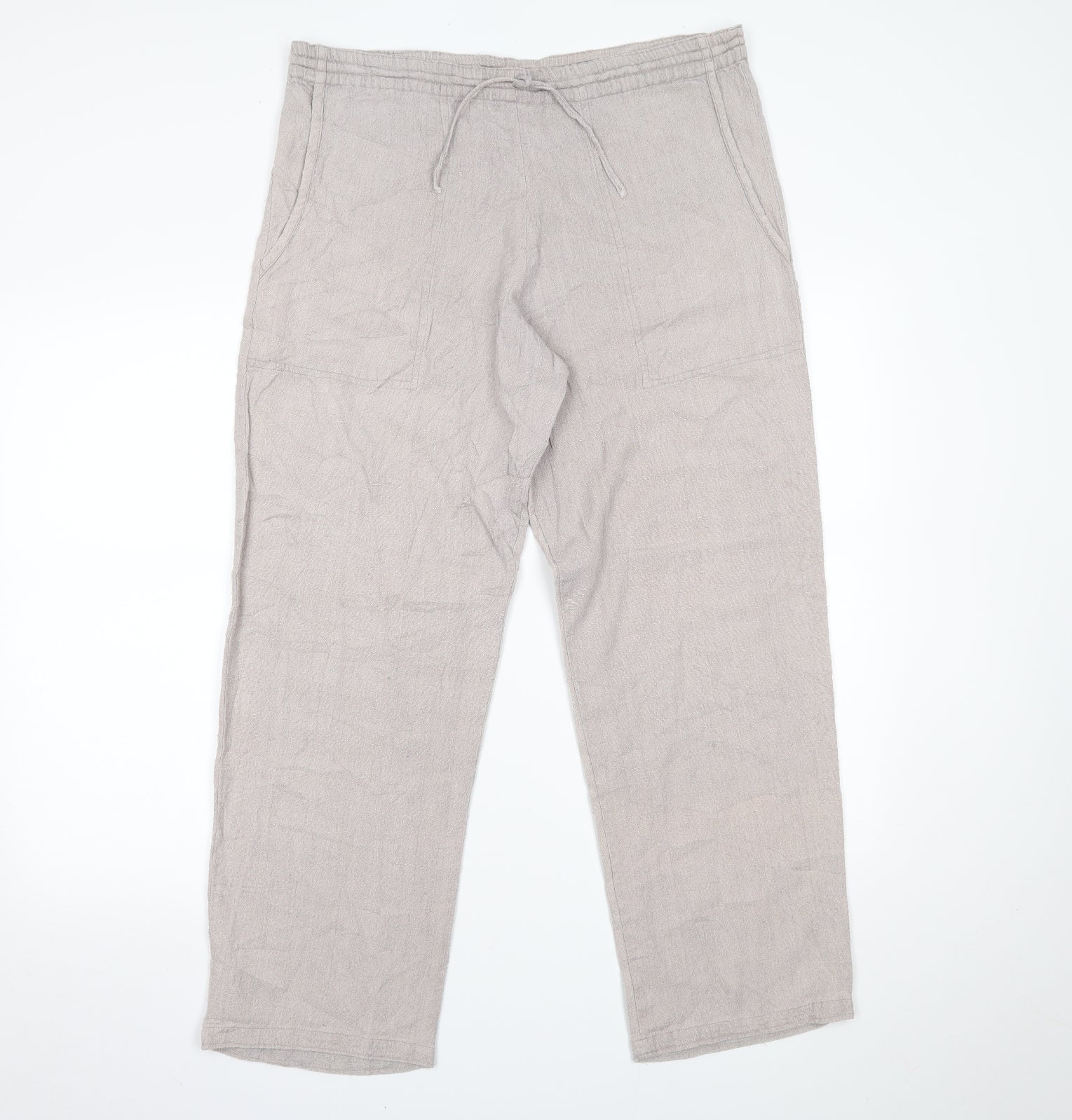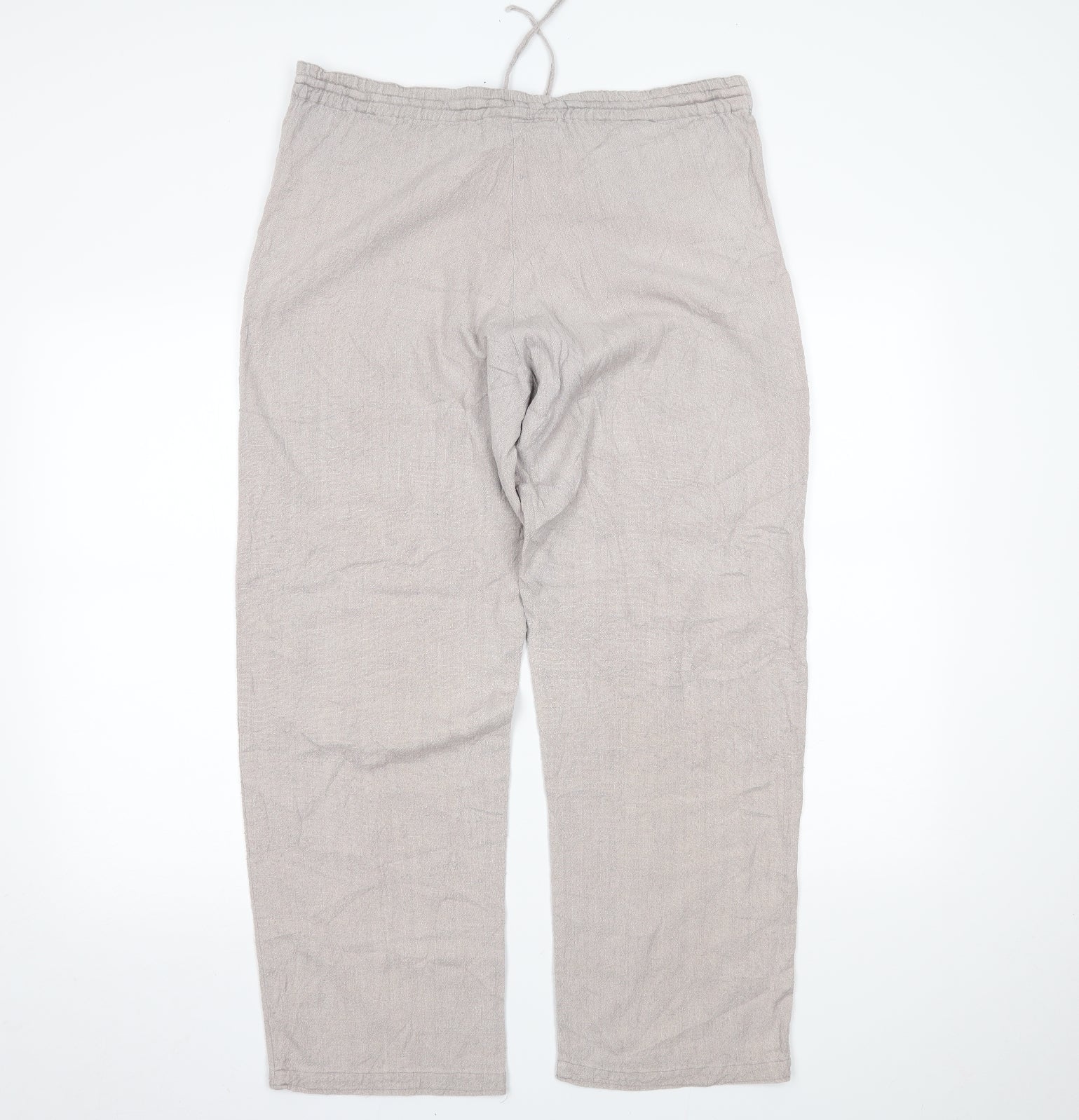 Zara Women Beige Linen Blend High Rise Trousers Size M