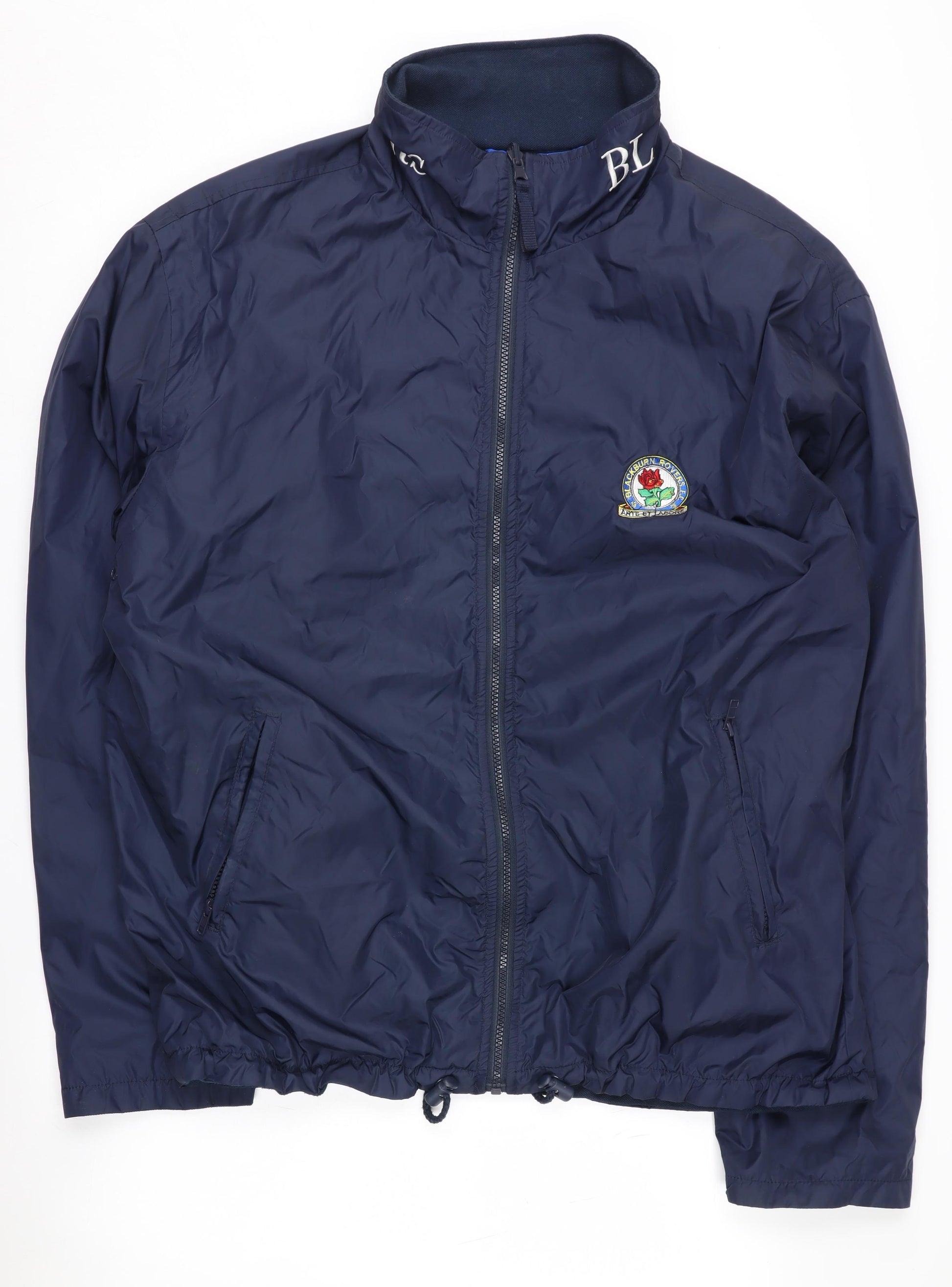 Show your support for Blackburn Rovers with this stylish men's jacket. Designed in a classic blue colour, this mid-length jacket is perfect for casual occasions and those chilly match days. Made from a high-quality blend of polyester and cotton, the outer shell offers a comfortable and durable wear, while the nylon lining ensures you stay cosy. Featuring a full zip closure, this jacket is easy to slip on and off, making it a practical choice for daily wear. The logo accents add a unique touch, showing off your team pride. With its regular fit and elastic waist, this jacket provides both comfort and style in any season. Ideal for men who appreciate a sporty, casual look, this jacket can be worn to a game or for a leisurely outing. Don't miss out on this excellent condition fan merchandise, perfect for adding to your collection or gifting to a fellow supporter.