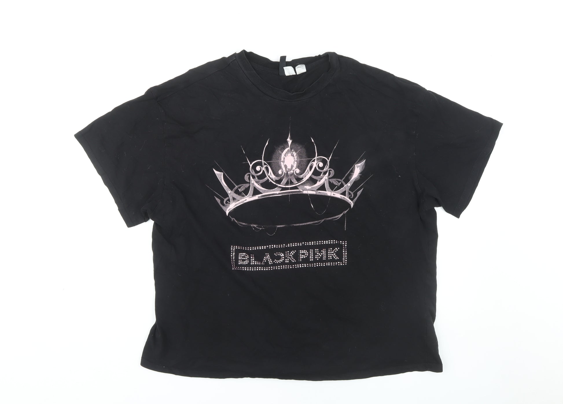 Step up your fashion game with this Women's Blackpink T-Shirt, perfect for any casual outing. This stylish piece is a must-have for any music enthusiast who loves to express their passion for Blackpink. Crafted from 100% soft cotton, it promises comfort and breathability for all-day wear. The t-shirt features a captivating rhinestone accent crown design, adding a touch of glam to its basic jersey style. With its classic crew neck fit and short sleeves, it combines simplicity with chicness in a timeless black colour. Perfectly suited for everyday casual wear, this regular fit top is machine washable, ensuring easy care and maintenance. Enjoy the blend of comfort and music culture in this versatile piece. Whether for a relaxed day out or as a laid-back concert attire, this Blackpink tee makes a bold statement. Its music-themed design is sure to make you stand out. Ideal for all seasons, don't miss out on adding this trendy garment to your wardrobe!