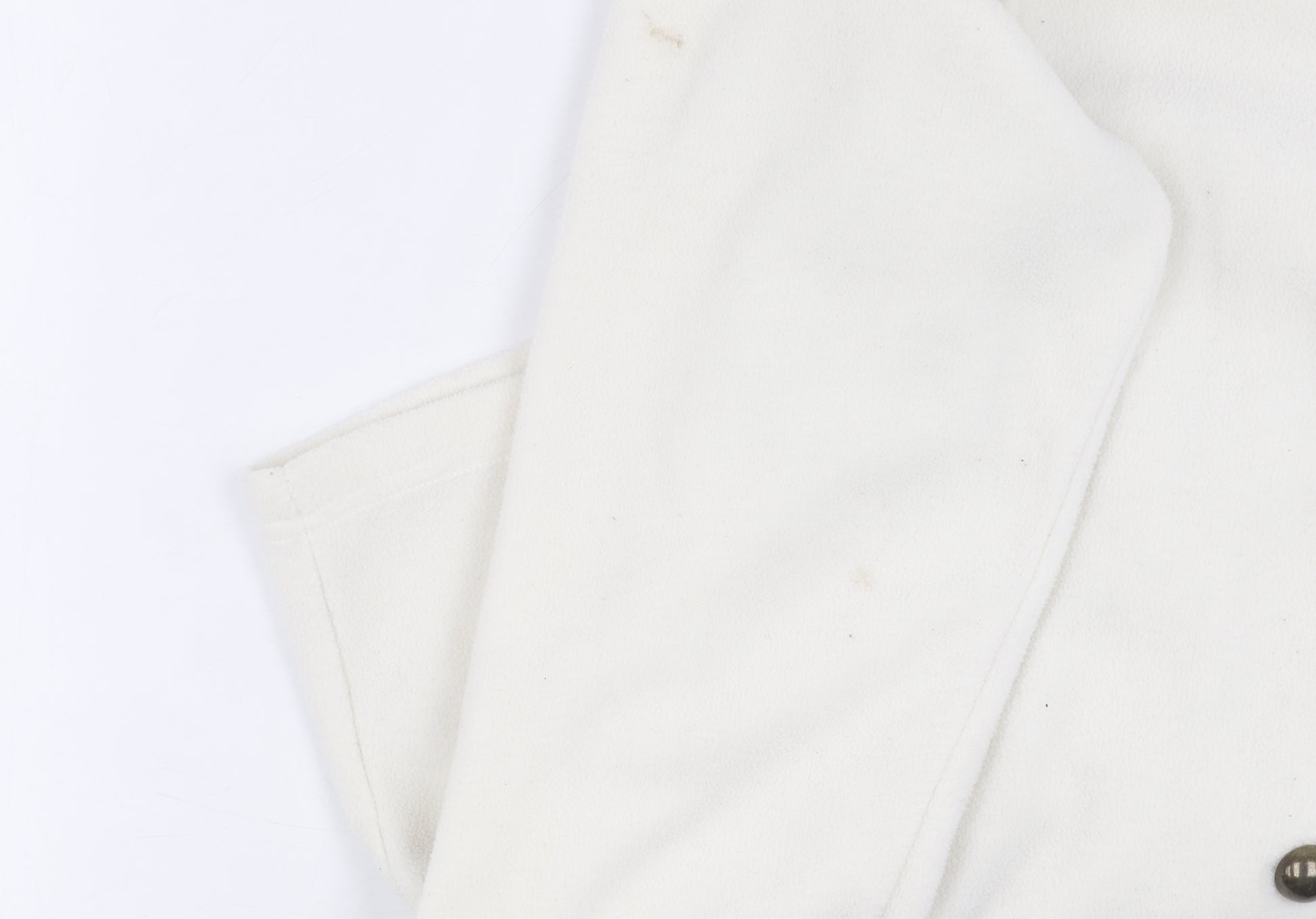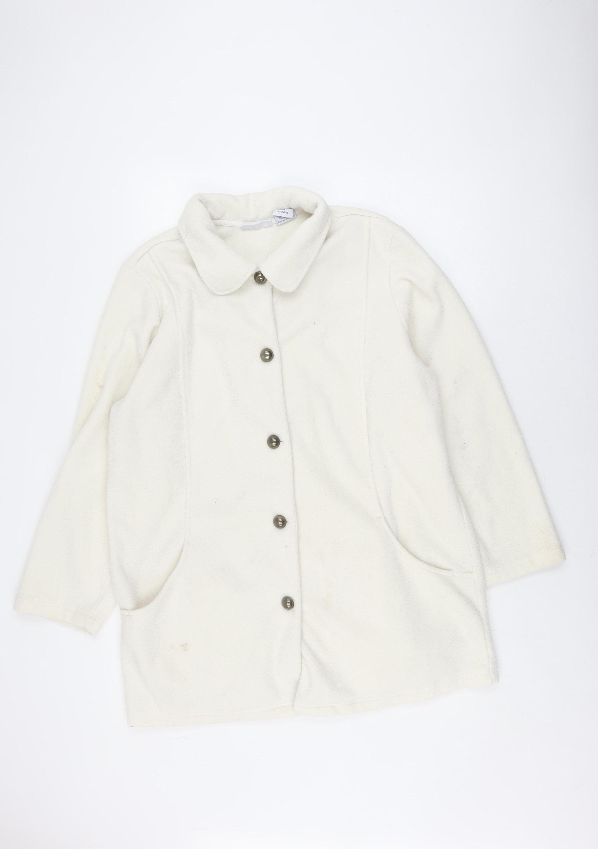 Step into the cooler months with this Blair Women's Ivory Fleece Jacket, perfect for adding a touch of classic style to your autumn and winter wardrobe. Crafted from soft polyester fleece, this mid-length jacket offers a relaxed yet tailored fit, ideal for casual outings. It features a timeless collared neckline and secure button closure, adding to its practicality and style.The jacket showcases an elegant ivory colour, making it versatile enough to pair with various outfits, from jeans to dresses. With no patterns to detract from its classic appeal, this jacket shines in its simplicity. Designed for women who appreciate both comfort and fashion, the long sleeves add warmth, ensuring you stay snug during those chilly days.The fleece fabric type lends a soft touch against the skin, promising all-day comfort. While it has been gently worn, it remains in very good condition, with only slight marks that do not detract from its overall appearance. This jacket is easy to care for, being machine washable, and offers a practical yet stylish addition to any wardrobe, whether you're heading out for a casual day or enjoying a laid-back outing.Size large ensures a comfortable fit for a regular size, accommodating various body types with ease. Perfect for casual occasions, this jacket serves not only as a functional layer for the cold seasons but also as a statement piece in your outerwear collection.