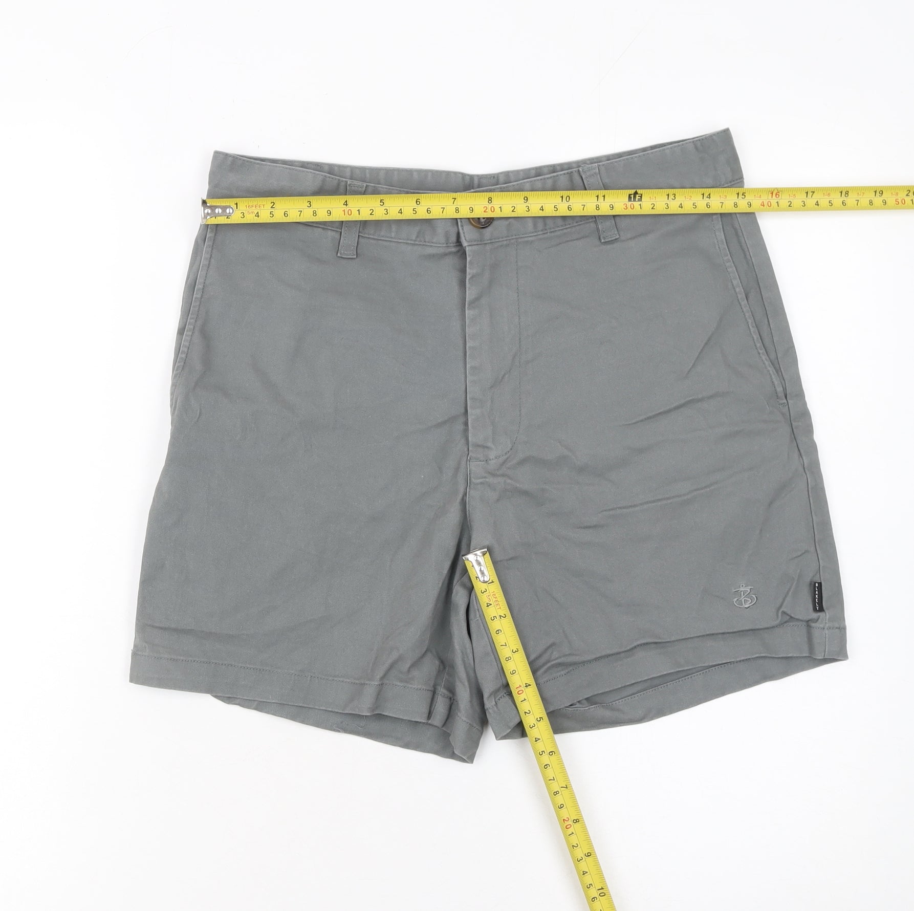 Step into effortless style and comfort with these Blakely men's chino shorts in a versatile grey shade. Crafted from a high-quality cotton and elastane blend, they offer a durable, breathable, and slightly stretchy feel, making them perfect for everyday wear. The regular fit and mid-rise design provide a flattering silhouette, while the classic chino cut makes them suitable for any casual occasion — whether you’re heading to the beach, brunch, or simply enjoying a sunny day outdoors. Featuring a flat front with button and zip closure, these shorts combine functionality with understated style. The belt loops give you the option to accessorize, while the slash pockets at the front and buttoned back pocket add practical details and a timeless touch. The smooth twill fabric ensures a smart yet relaxed appearance, while the soft cotton blend keeps you comfortable all day long. In very good pre-owned condition, these shorts show only minor creasing consistent with gentle wear. Their durable construction and easy-care fabric make them ideal for repeated use without compromising quality. Machine washable and designed to last, they’re a wardrobe essential for the modern man who values versatility and comfort. Pair these Blakely chino shorts with a crisp white shirt for a smart-casual summer look or keep things laid-back with a simple tee and trainers. Perfect for spring and summer, they deliver a clean, classic aesthetic that will never go out of style. Offering both practicality and polish, these shorts are a reliable go-to piece that blends timeless tailoring with everyday ease. Whether dressing up or keeping it casual, they’re ready to take you anywhere in comfort and confidence.