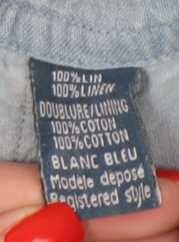 Discover the ideal addition to your summer wardrobe with these Blanc Bleu Men's Blue Linen Bermuda Shorts. Crafted from 100% linen, these shorts ensure comfort and breathability, making them perfect for casual wear during the warmer months. Designed in a relaxed fit, they offer both style and ease, featuring a practical drawstring closure that adds to their laid-back appeal. The flat front and no pattern contribute to a classic and timeless look, while the inclusion of cargo pockets offers functionality for those on the go. Whether you're heading to the beach or enjoying a casual day out, these Bermuda shorts become an essential garment, suitable for spring and summer wear. Despite minor signs of wear and a small stain, they remain in very good condition, providing excellent value for a price of just £18.75. Don't miss the chance to own this versatile piece that combines casual style with everyday utility.