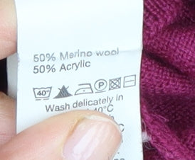 Discover the perfect blend of comfort and style with the Blazer Men's Purple V-Neck Pullover Jumper. Crafted from a luxurious mix of 50% wool and 50% acrylic, this jumper promises softness against your skin while maintaining durability. The rich purple colour adds a bold touch to your wardrobe, effortlessly transitioning from casual to more polished settings. Designed in a classic pullover style, it features a V-neckline that lends an elegant silhouette, suitable for layering over shirts for a versatile look. The long sleeves offer warmth, making this jumper an ideal choice for those cooler days. Although preloved, it remains in good condition with some light marks on the front, which are minor and do not detract from its overall appeal. Pair this jumper with jeans for a laid-back outfit or dress it up with tailored trousers for a more refined appearance. Embrace the quality of Blazer with this must-have men's jumper, providing both style and comfort for any occasion. A wardrobe staple that blends seamlessly with various outfits, ensuring you always step out in style.