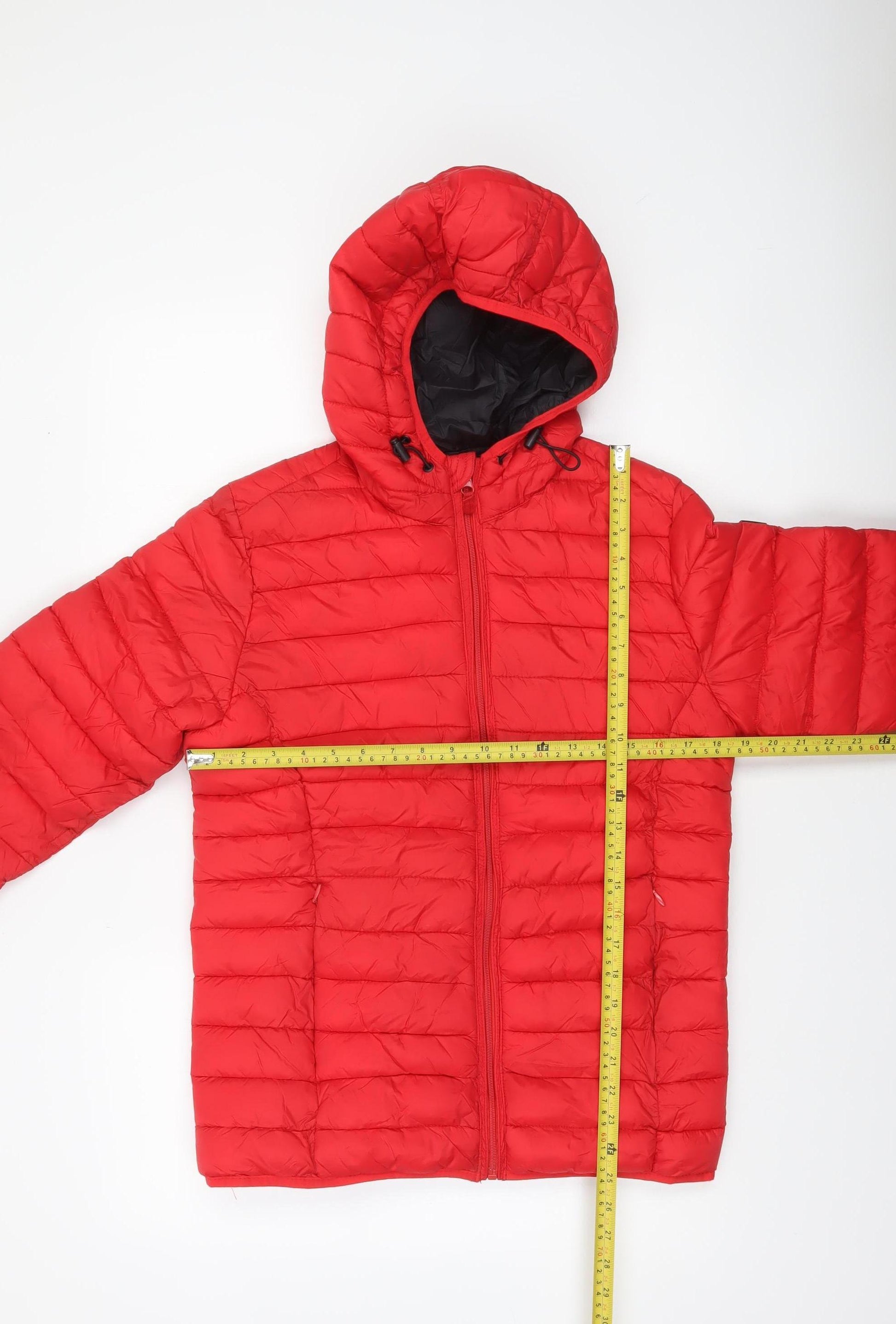 Men's Red Hooded Puffer Jacket Size S Lightweight Winter Coat