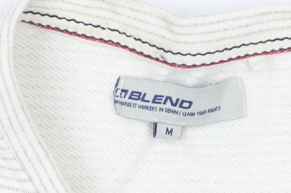 Add a touch of casual elegance to your wardrobe with this Blend Women's Ivory Striped Basic Long Sleeve Top in size M. Crafted from high-quality 100% cotton, this knit top ensures comfort and breathability, making it perfect for all seasons. The classic crew neck design and embroidered accent provide a subtle yet chic touch, while the regular fit flatters a range of body types. Ideal for casual occasions, this versatile piece can be seamlessly integrated into your everyday outfits. Pair with your favorite jeans or a skirt for a laid-back, stylish look. Machine washable for easy care, this top is a must-have staple for any wardrobe. Slight wear is present, but it remains in overall excellent condition. Don't miss out on this wardrobe essential at an attractive price.