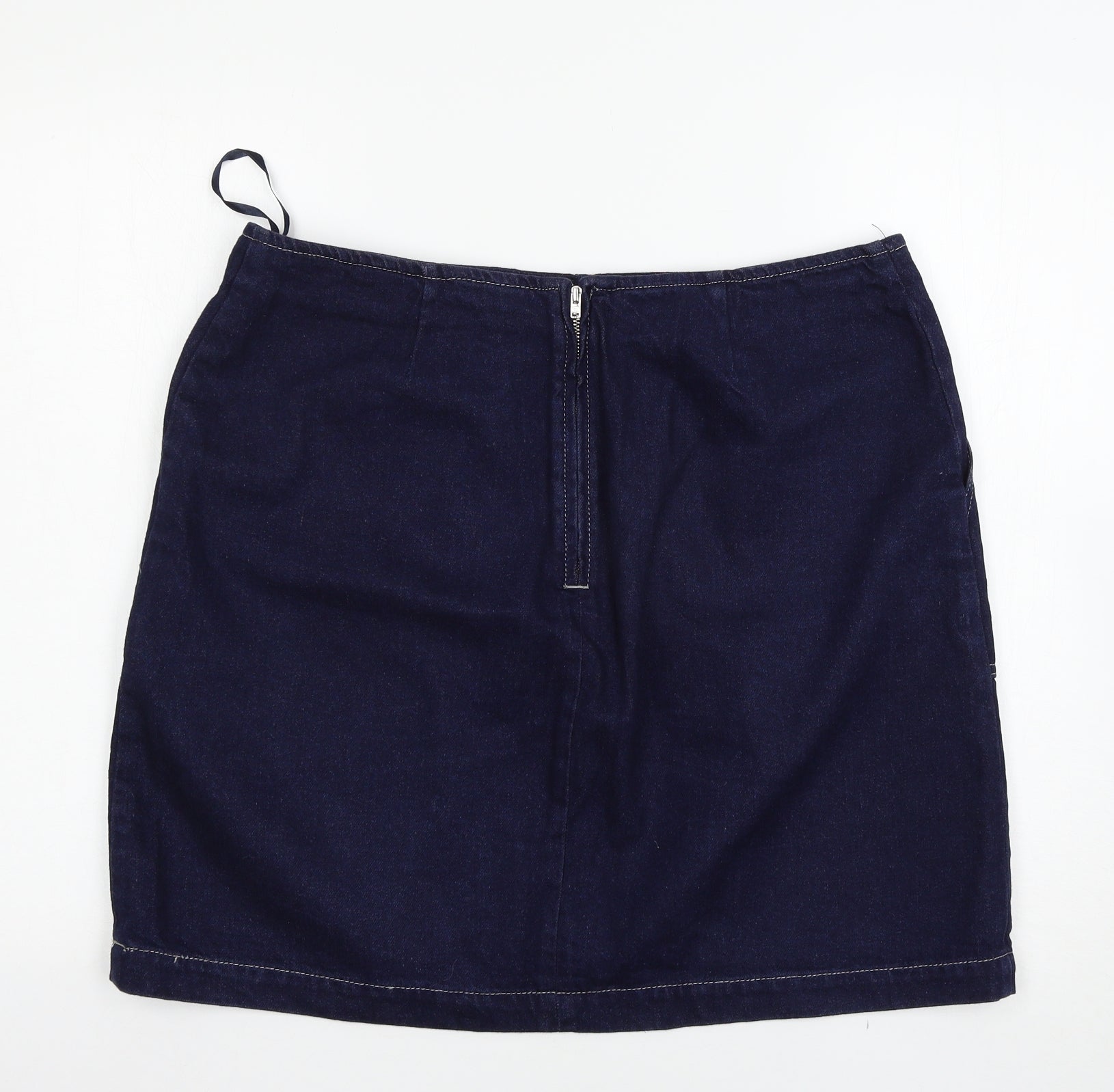 Papaya Women's Blue Linen Wrap Midi Skirt Size 16