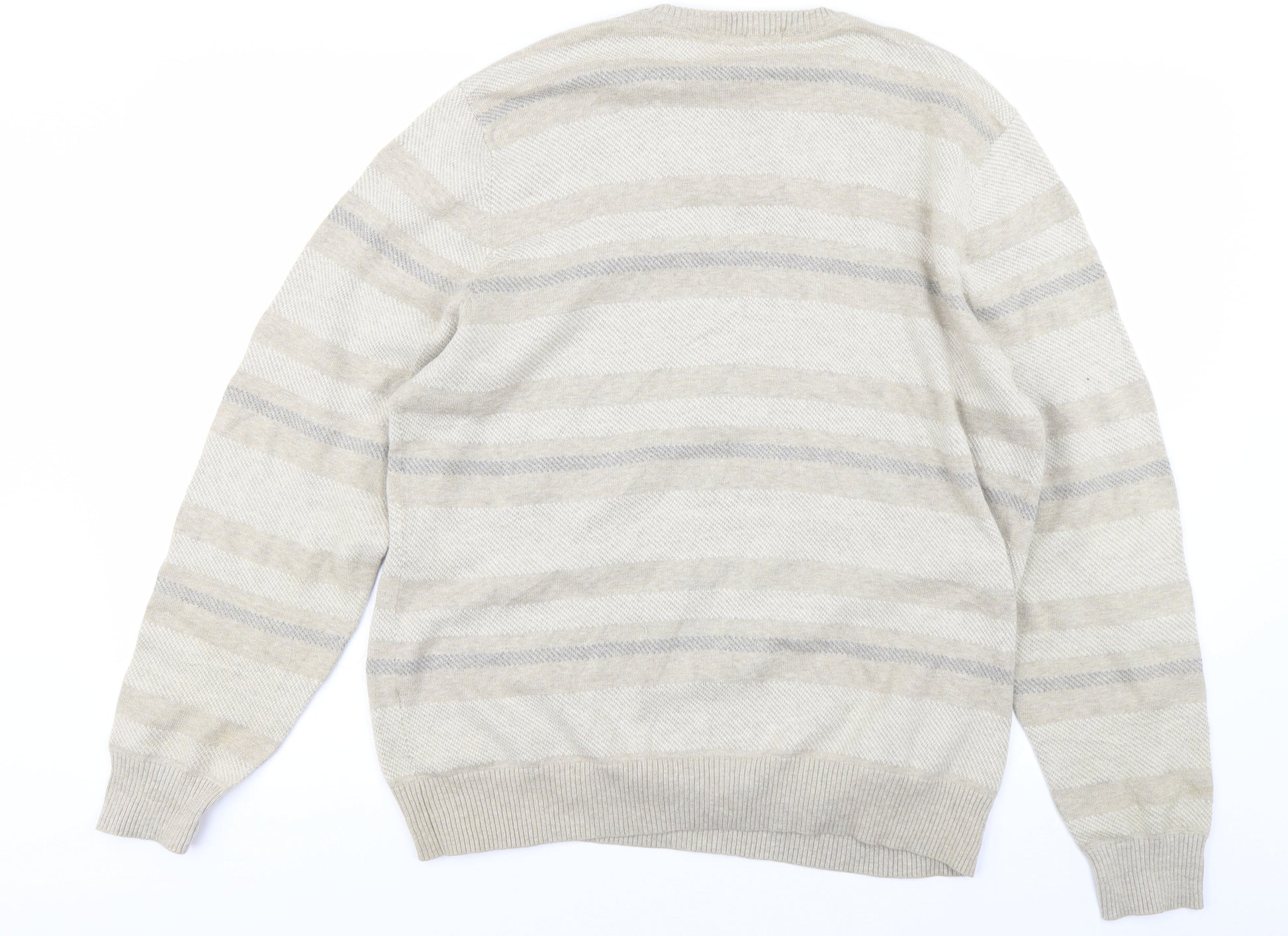 Mens Beige Striped Knit Pullover Jumper Size L