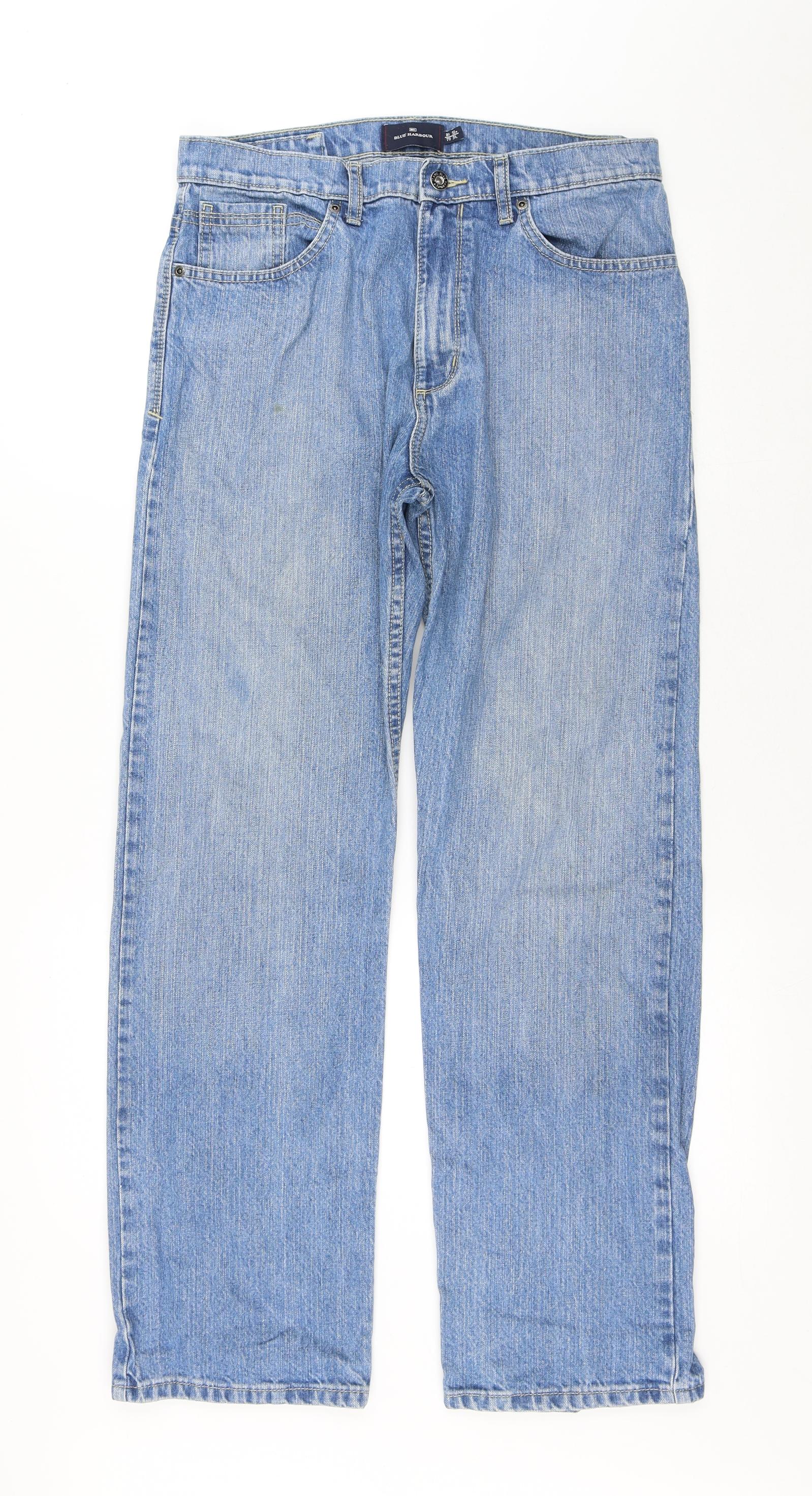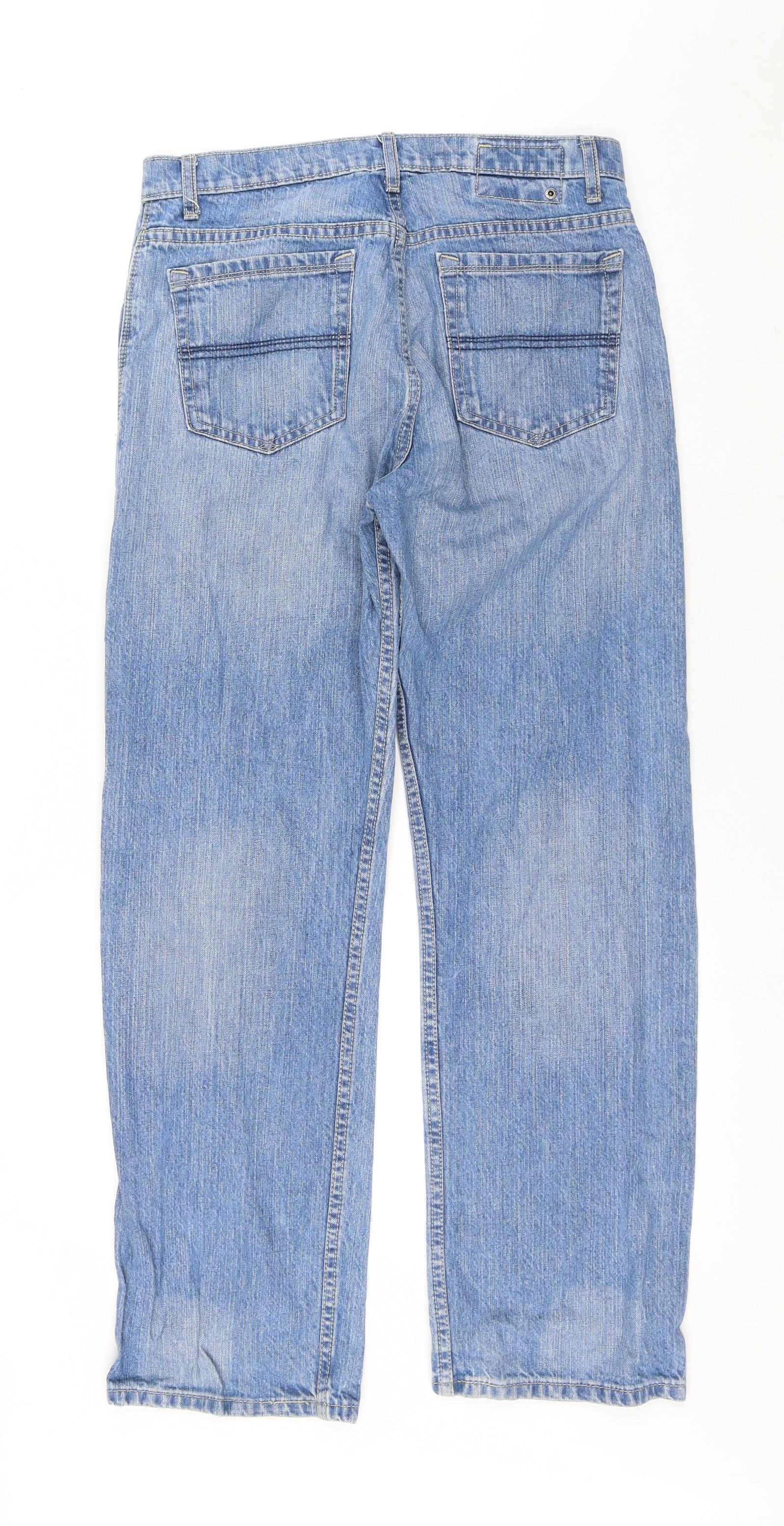 Mens Blue Cotton Straight Jeans Size 32 in L31 in Regular Button