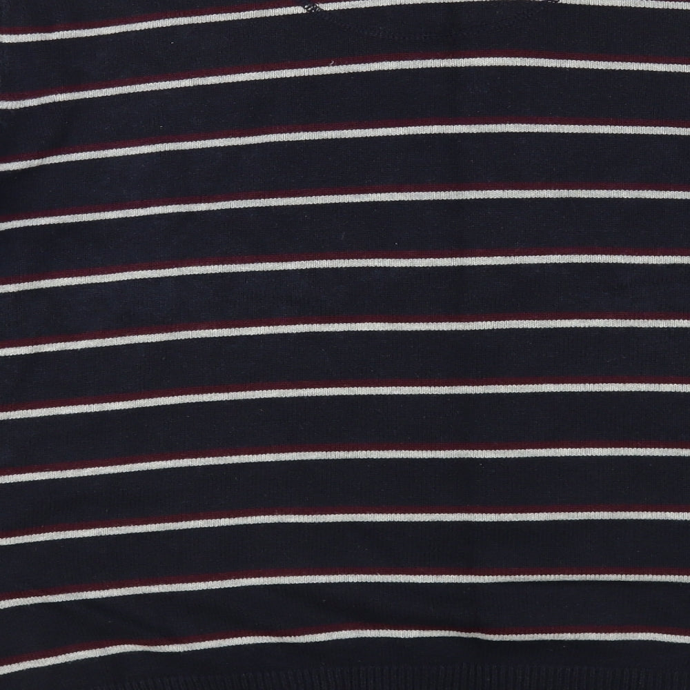 Mens Blue Crew Neck Striped Cotton Pullover Jumper Size L