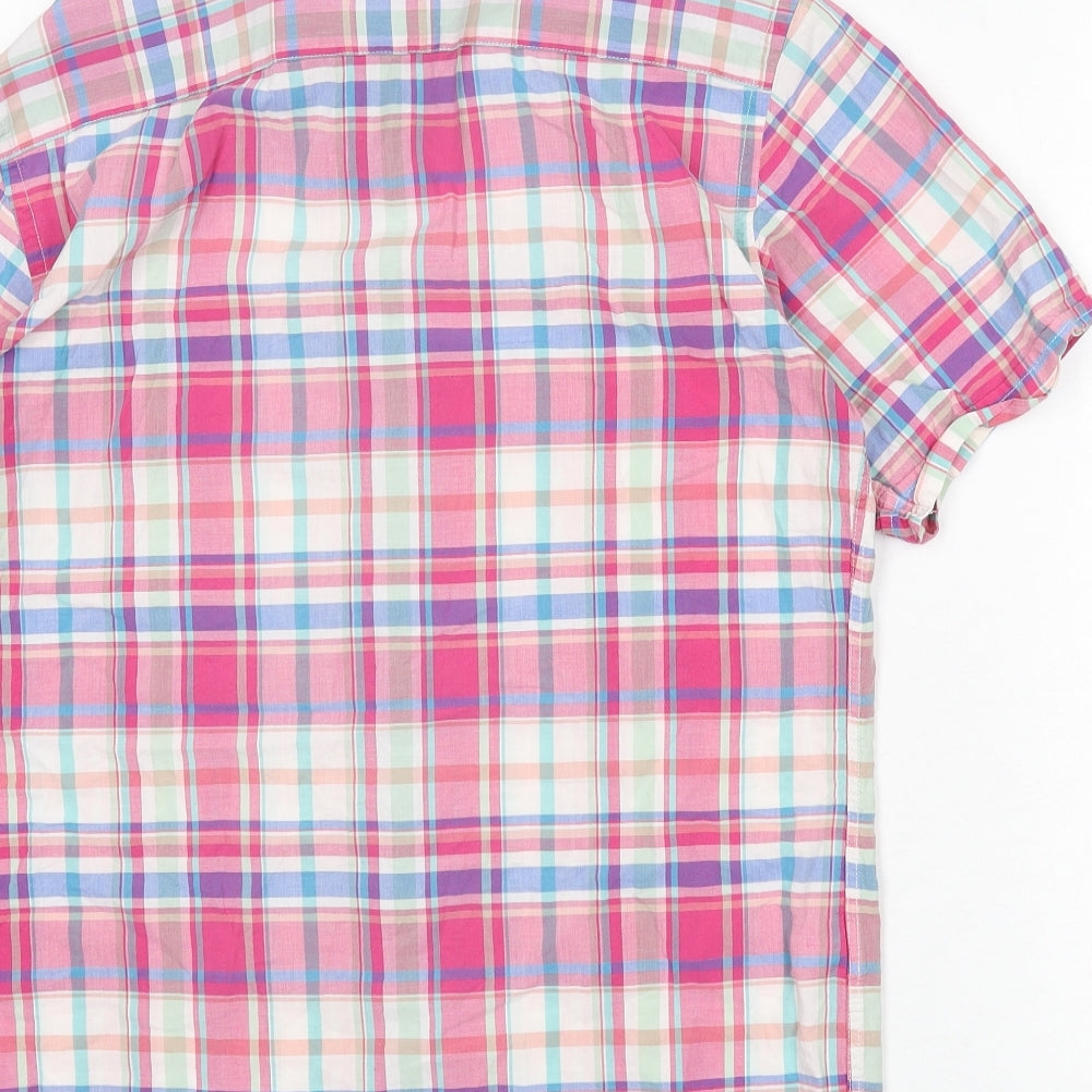 Mens Multicoloured Plaid Cotton Button-Up Size S Collared Button