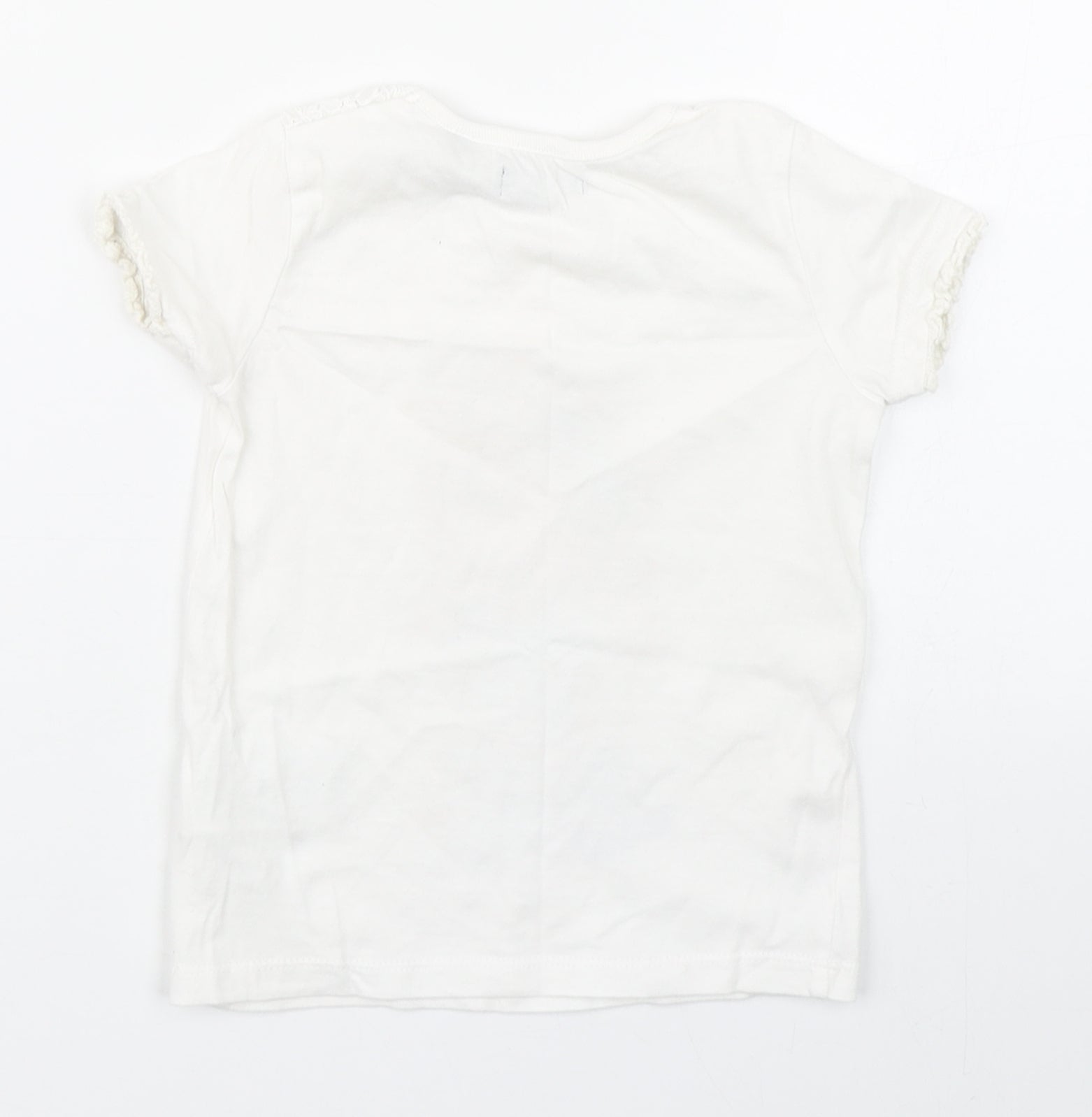 Girls White 100% Cotton Basic T-Shirt Size 2 Years Round Neck Pullover