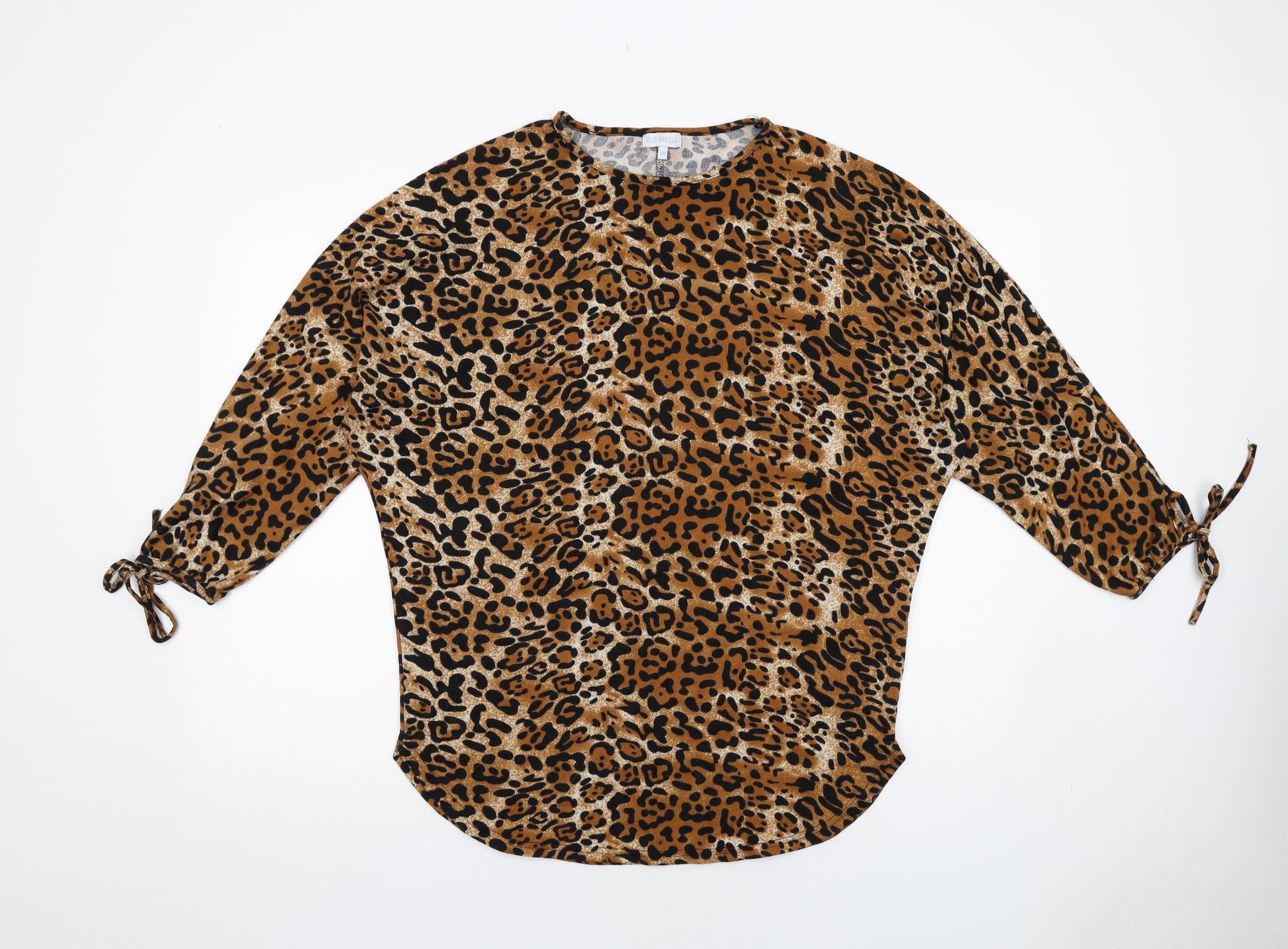 Womens Brown Animal Print Polyester Basic Blouse Size S Round Neck - Leopard Print