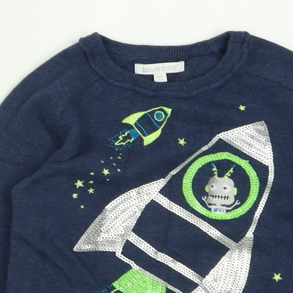 Boys Blue Crew Neck Cotton Pullover Jumper Size 3-4 Years Pullover