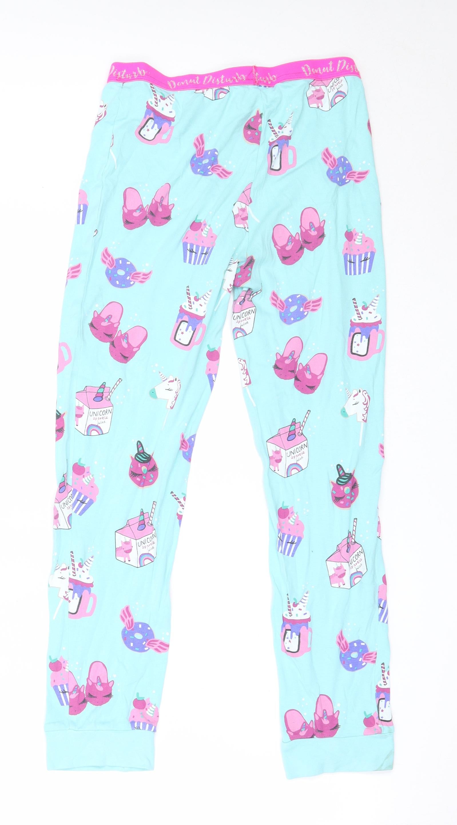 Girls Blue Solid Cotton Capri Pyjama Pants Size 12-13 Years
