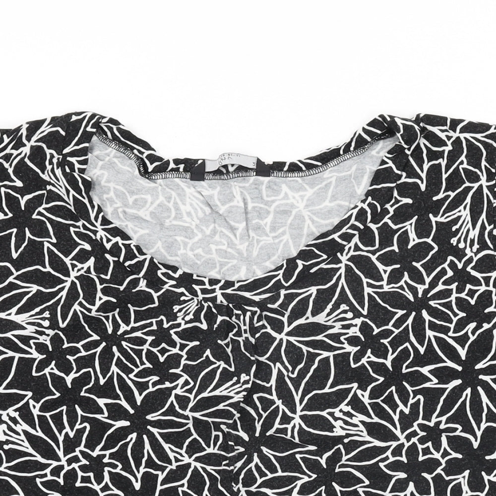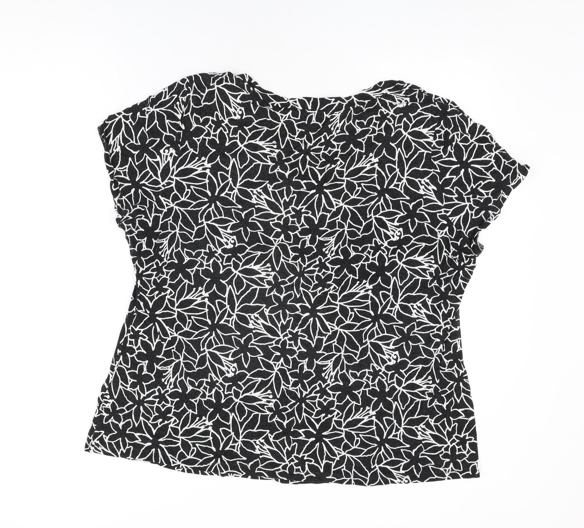 Womens Black Floral Viscose Basic T-Shirt Size 24 V-Neck