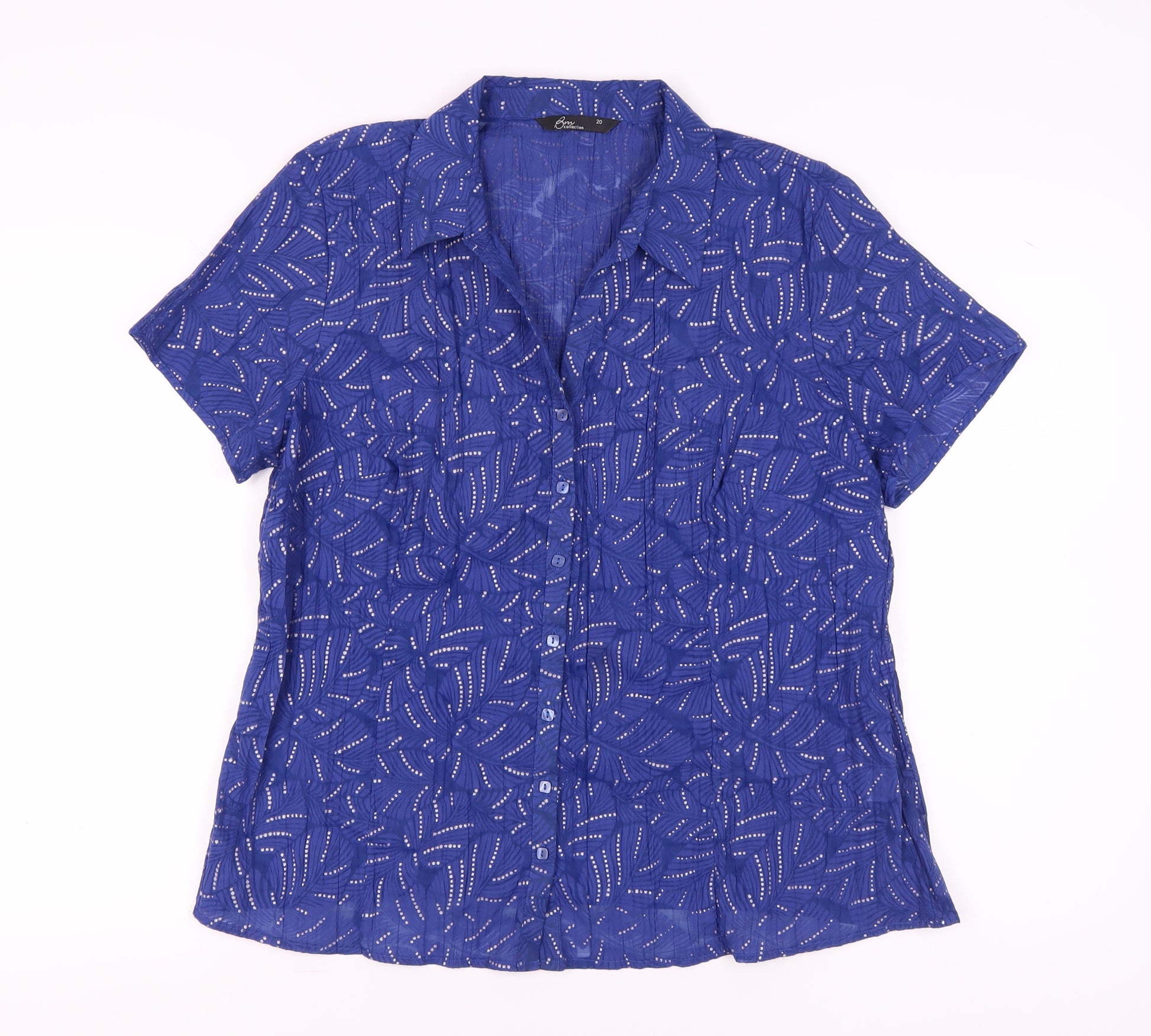 Elevate your wardrobe with this elegant BM Collection blue blouse. Crafted for women who appreciate both style and comfort, this piece features a captivating geometric pattern sure to make a statement. Designed with short sleeves, this blouse is perfect for spring and summer wear. The collared neckline adds a touch of sophistication, while the button accents provide a classic look. Made from a comfortable cotton blend fabric, this blouse ensures ease of movement and breathability, ideal for all-day casual wear. Pair it with your favourite jeans or a sleek skirt for a versatile outfit that transitions smoothly from day to evening. This blouse is machine washable, making it easy to care for and maintain. When it comes to everyday style, this BM Collection blouse stands out as a must-have piece.