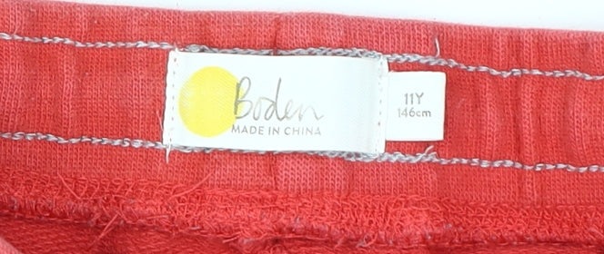 Introducing a practical yet stylish addition to your little one's wardrobe with these Boden Boys Red Sweat Shorts. Perfect for spring and summer outings, these shorts are structured with 100% cotton material, ensuring a comfortable and lightweight feel. The vibrant red hue adds a pop of colour, making these shorts a versatile piece for casual occasions. Designed with an elastic waistband and an adjustable drawstring, the fit is flexible and secure, enhancing ease of movement during active playdates or lazy afternoons. These shorts feature functional pockets, adding a touch of utility to a classic design. Despite some visible marks on the back pocket, these shorts remain a good choice for everyday wear. With a mid-rise flat front and regular fit, they offer a relaxed aesthetic while ensuring durability. Pair these sweat shorts with a casual tee or a smart polo shirt for an effortlessly cool summer look. Machine washable for easy maintenance, these shorts are designed to withstand playful adventures. Grab this great find today and bring comfort and style to your child's casual collection.