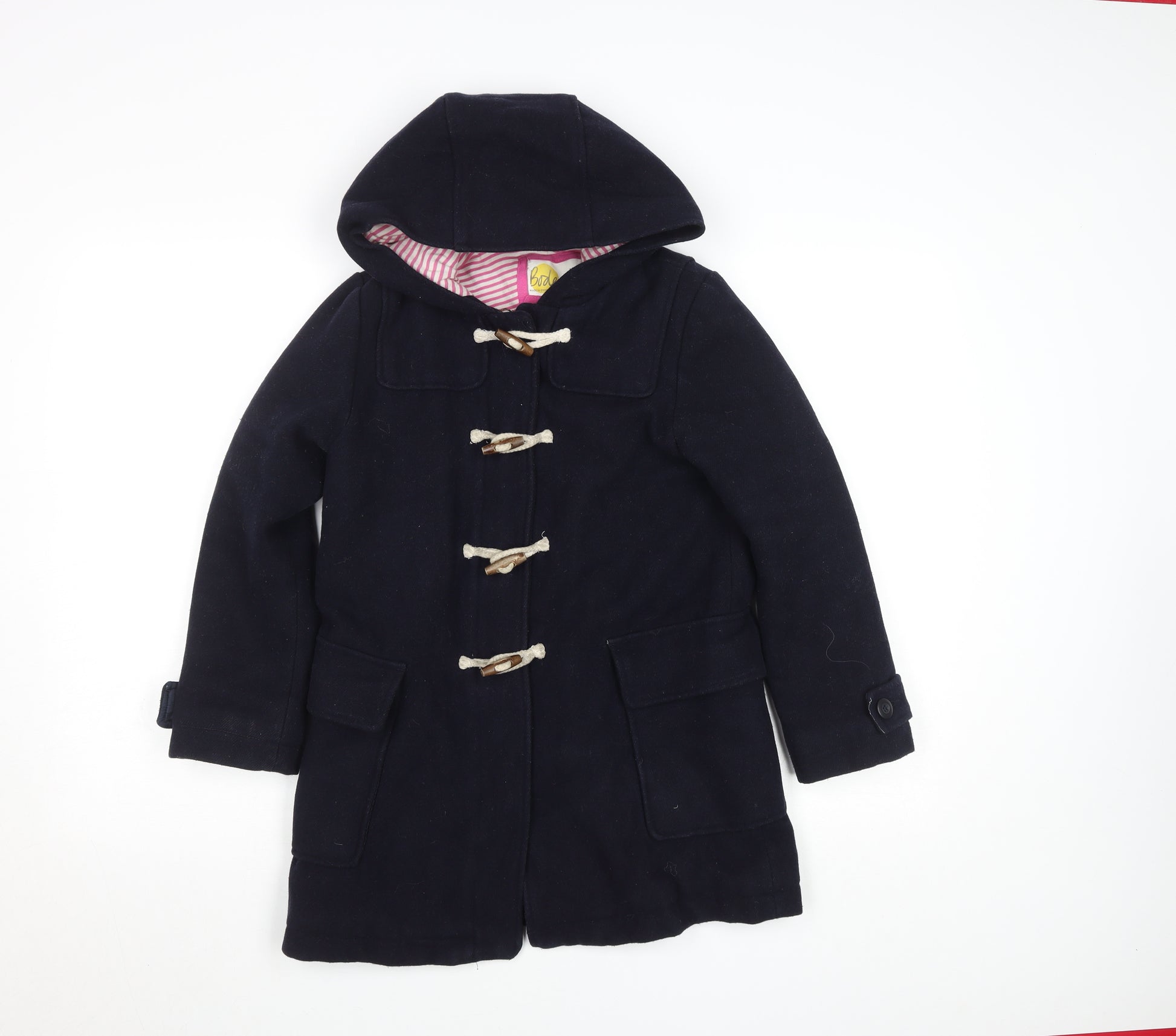 Girls Blue Wool Blend Duffle Coat Hooded 9-10 Years Lined Winter