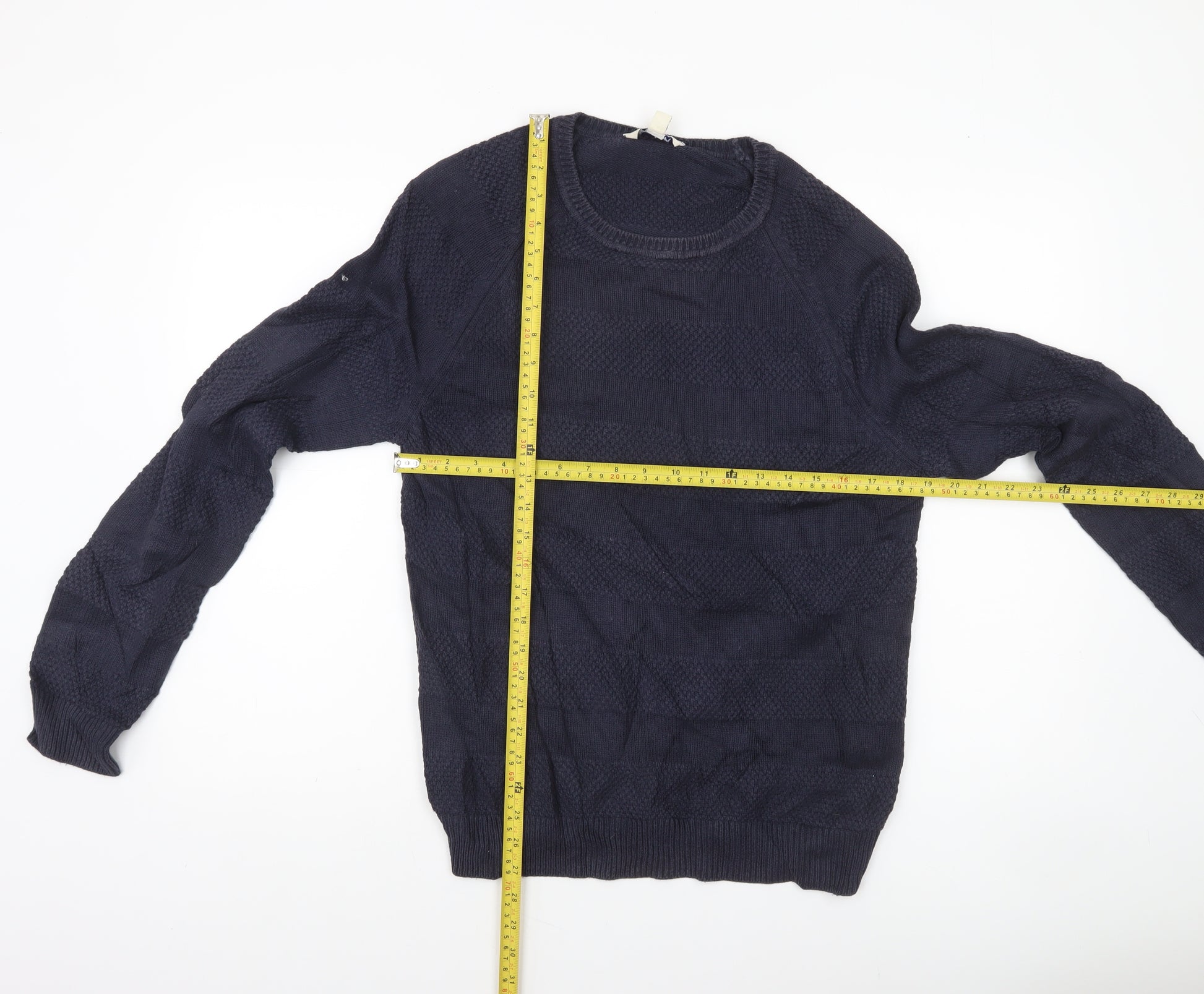 Men’s Blue Cotton Crew Neck Textured Knit Jumper S