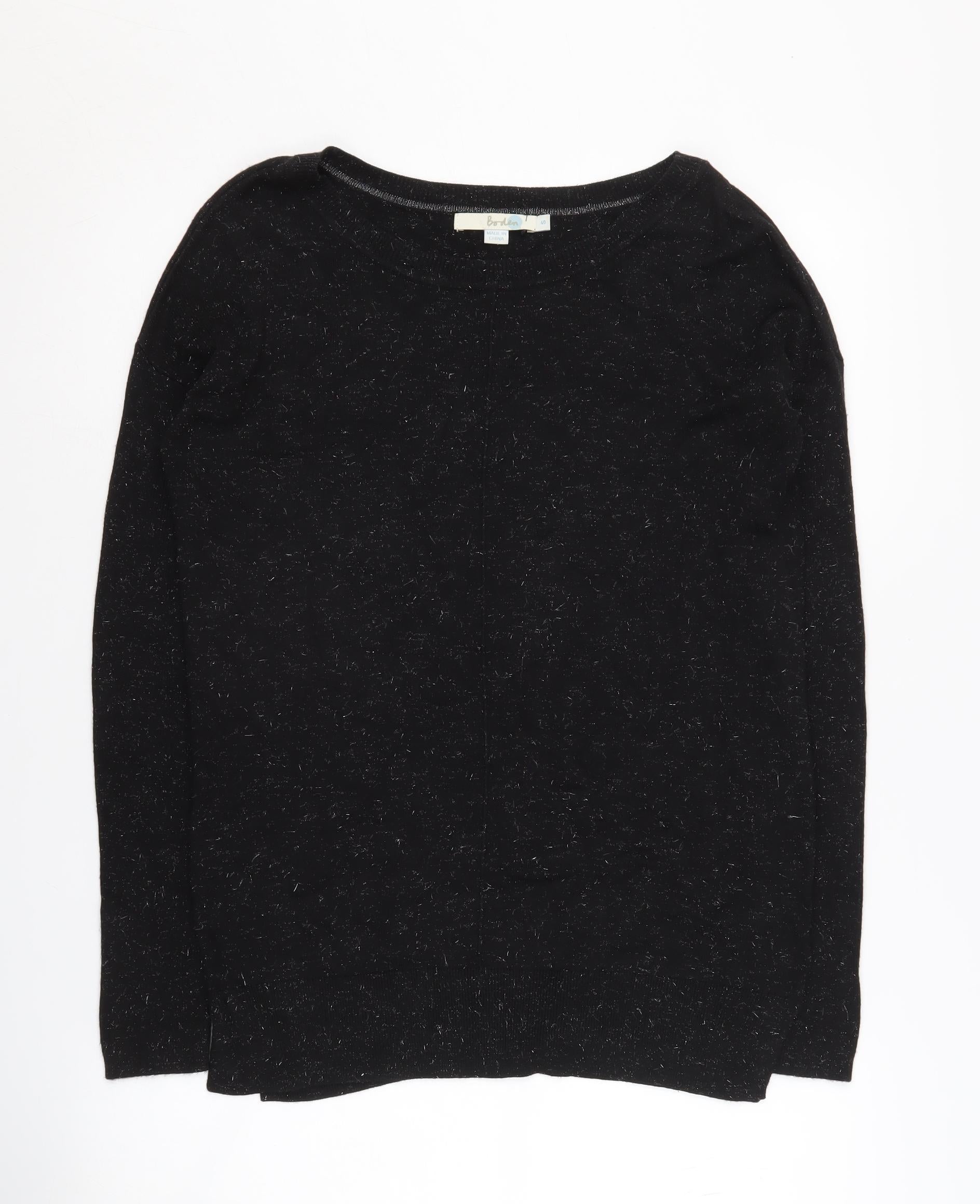 Explore the effortless elegance of this Boden Women's Black Knit Jumper, perfect for a stylish addition to any wardrobe. Crafted for comfort and durability, the jumper is made from a blend of viscose and nylon, providing a soft and luxurious feel against the skin. The sleek black colour ensures it pairs seamlessly with any outfit, making it a versatile piece for various occasions. Whether you're dressing for a casual day out or layering for a more polished look, this jumper is an excellent choice. With a regular fit and long sleeves, it offers both warmth and style, ideal for the cooler seasons. The jumper is crafted with attention to detail, ensuring you look sophisticated without compromising on comfort. Invest in this timeless piece today, and enjoy the understated charm and quality of Boden's knitwear. Perfect for any occasion, this jumper is a must-have for anyone's wardrobe.