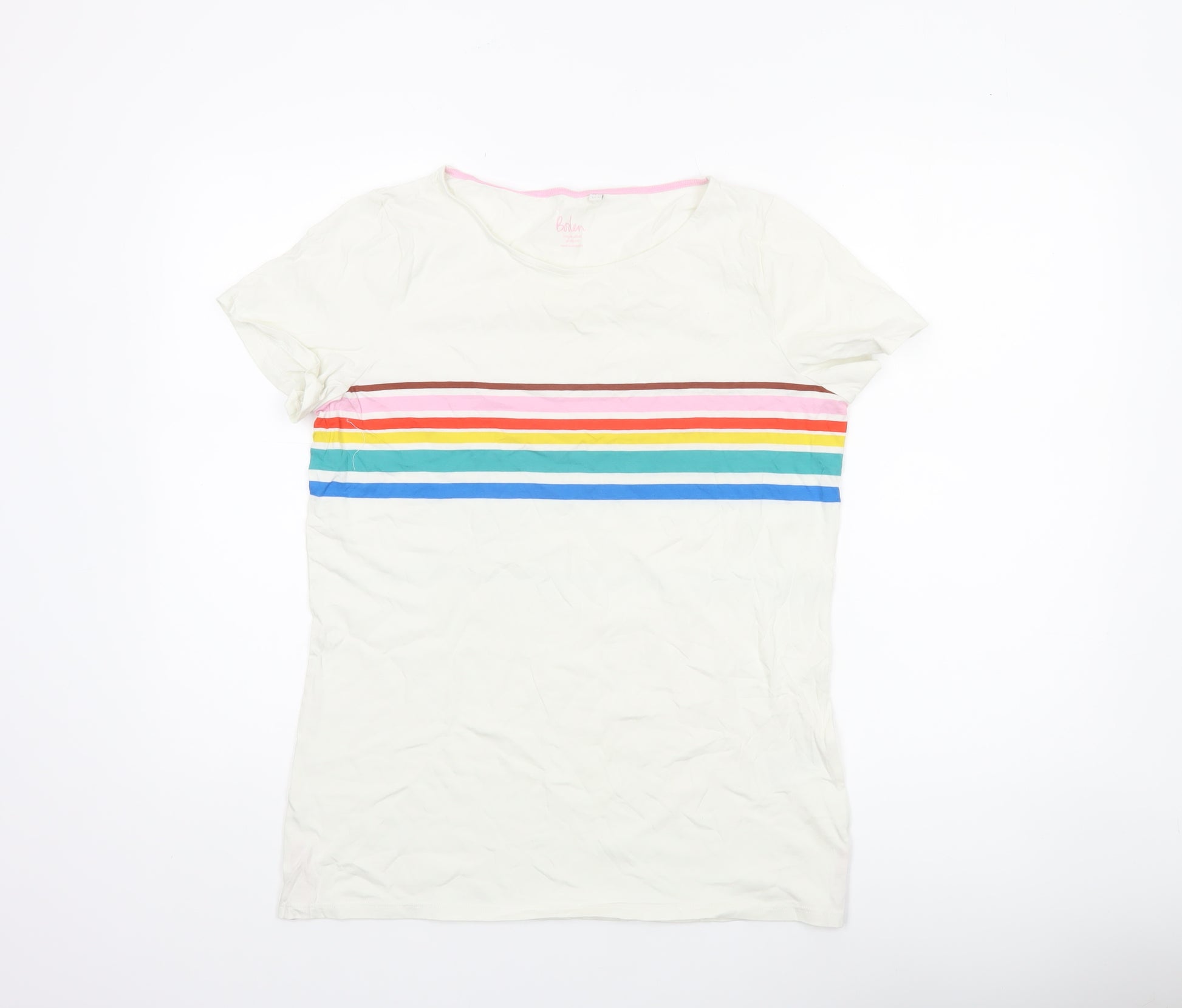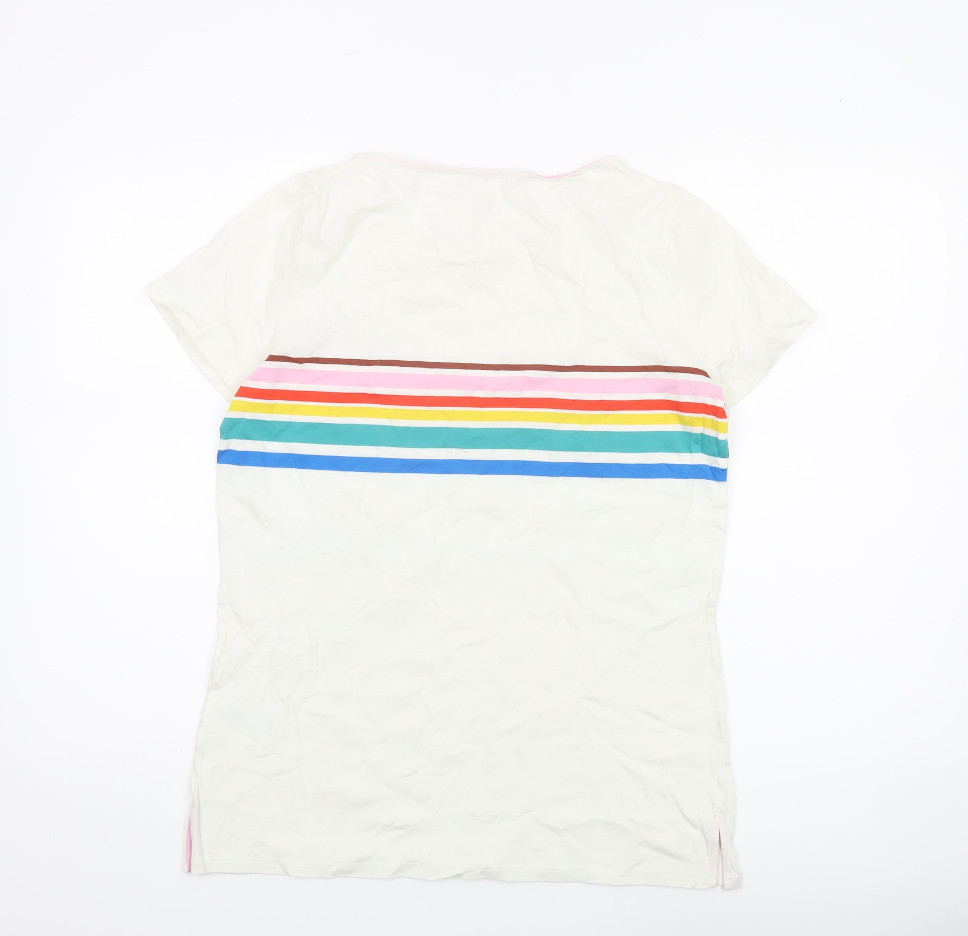 Women White Rainbow Stripe Cotton T-Shirt UK 14