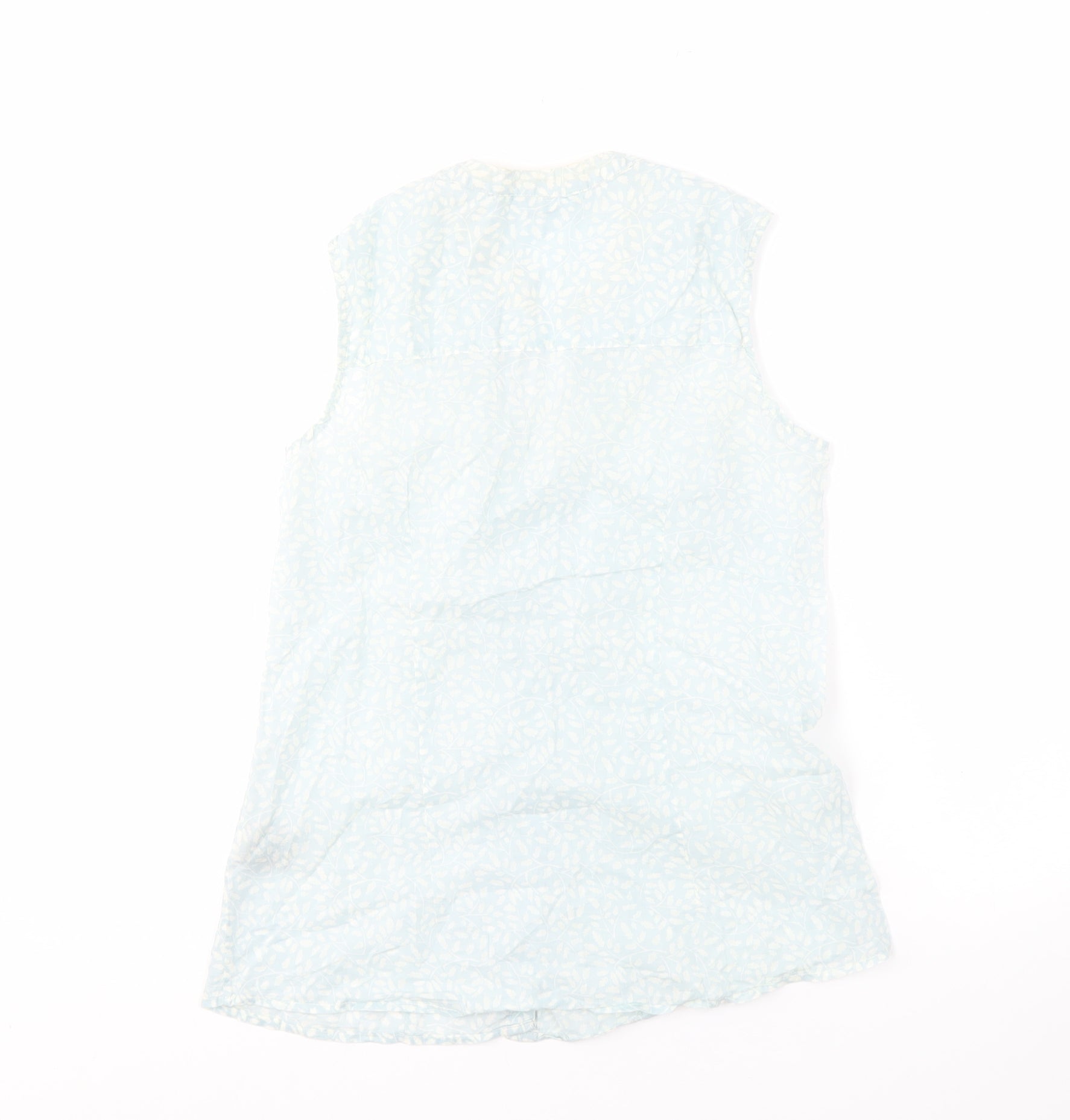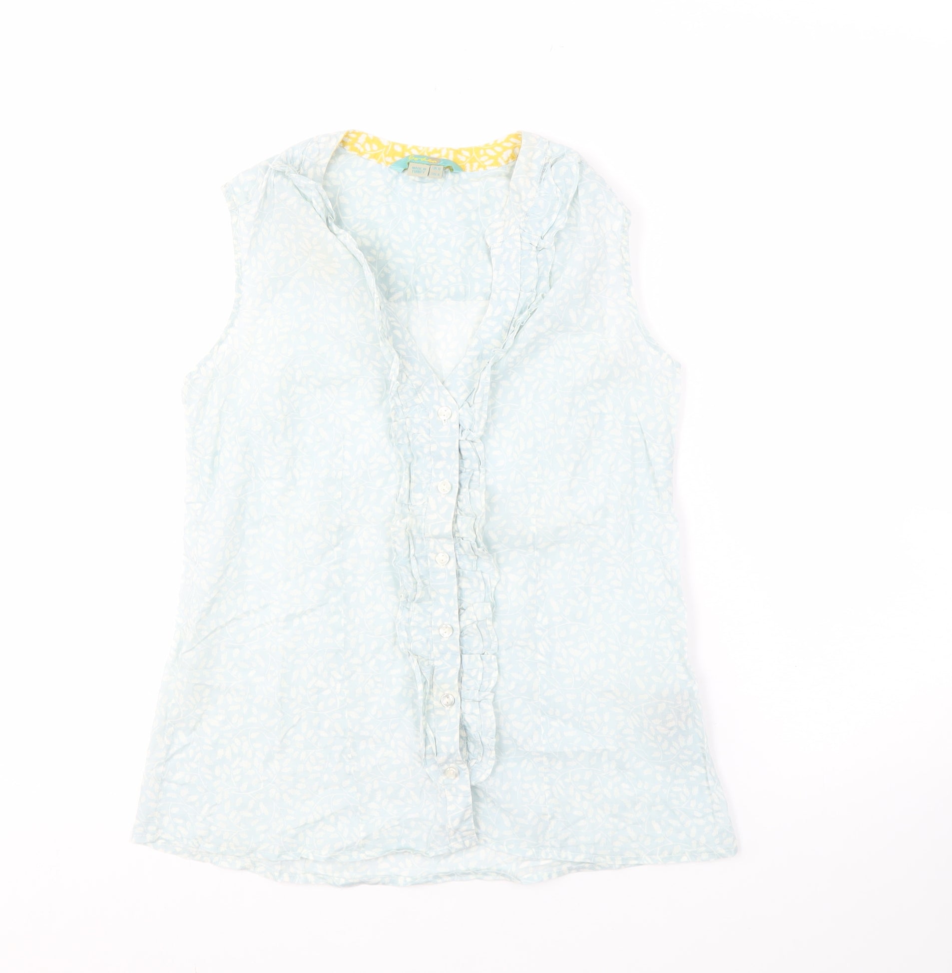 Embrace elegance with this delightful blue floral blouse from Boden. Crafted for women, this sleeveless top adds a touch of femininity to your casual wardrobe. Made from 100% cotton, it promises comfort and breathability, perfect for sunny days. The blouse features a button closure and a tasteful floral pattern, making it a versatile piece for various occasions. Pair it with jeans or a skirt for a sophisticated yet relaxed look. Although slightly creased, this blouse maintains an excellent condition, ready to be a cherished addition to your clothing collection.