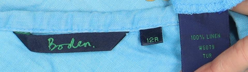 Add a touch of vibrant elegance to your wardrobe with this enchanting blue floral skirt from Boden. Expertly crafted in 100% linen, this knee-length skirt is both breathable and stylish, making it an ideal choice for spring and summer outings. The delicate floral embroidery adds a whimsical charm that enhances its overall appeal, ensuring you make a statement wherever you go. Designed for casual occasions, this skirt features a comfortable mid-rise fit, complete with a button closure for easy wear. Perfect for pairing with your favourite blouse or t-shirt, this versatile piece offers effortless style on any sunny day. Despite minor signs of wear and lacking original tags, this skirt remains in good condition, ready to elevate your everyday ensembles. Machine washable for your convenience, this delightful skirt is the perfect blend of fashion and function. Don't miss the chance to make this captivating Boden skirt a staple in your seasonal attire.