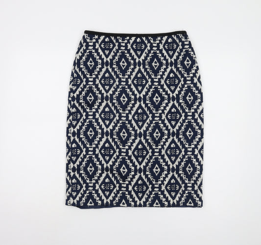 Marks and Spencer Women's Blue Tweed Pencil Skirt Size 10 Belted