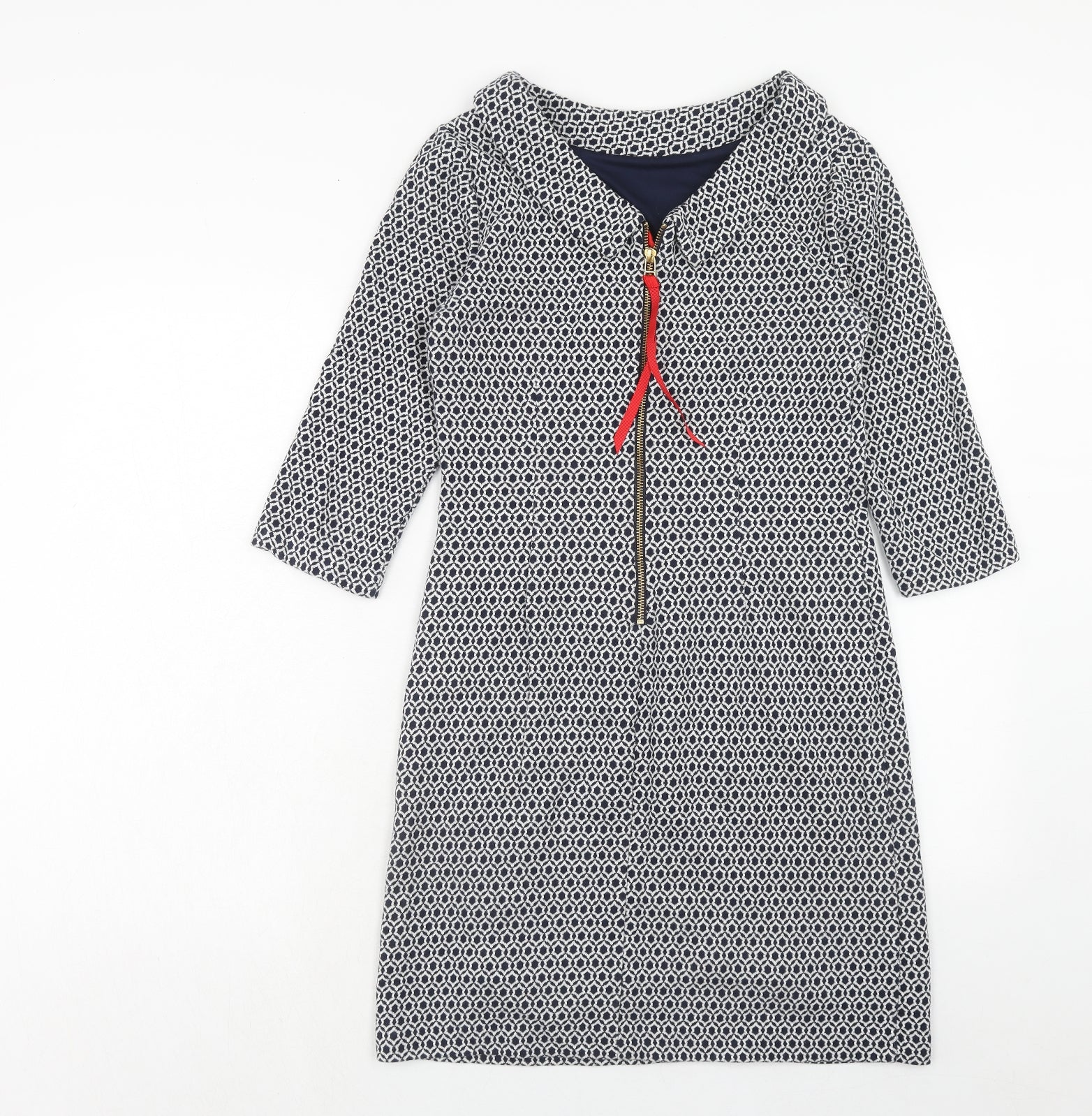 Womens Blue Geometric Cotton Sheath Size 8 Collared Zip