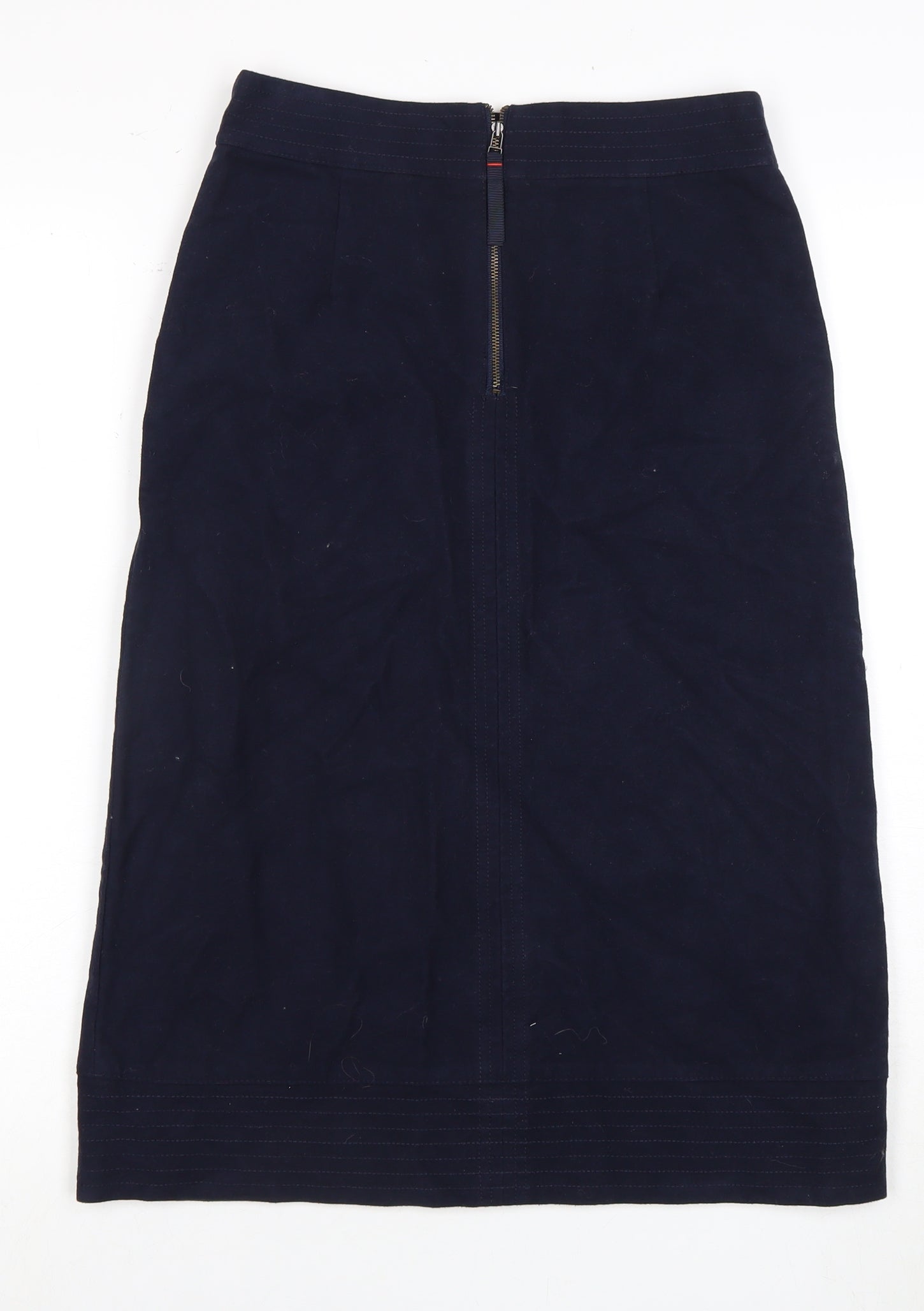 Step out in style with this elegant blue midi skirt from Boden. Tailored to perfection, this skirt is designed in a flattering pencil style that suits any occasion or wardrobe. Its rich blue hue adds a sophisticated touch, while the discreet zip closure enhances its streamlined silhouette. Crafted from a high-quality blend of 98% cotton and 2% elastane, this skirt offers a comfortable fit that moves with you, ensuring a perfect blend of style and practicality. Whether you're dressing for a casual day out or a laid-back office look, this versatile piece is your go-to option. While previously loved, it remains in excellent condition with only minimal signs of gentle use. Elevate your fashion collection with this elegant Boden skirt, the ideal addition for any season. Machine washable for effortless care, enjoy the perfect mix of style and convenience with this timeless piece. Ideal for women who appreciate quality and design, this skirt promises to be a staple item in your wardrobe, making you look effortlessly chic on any occasion.