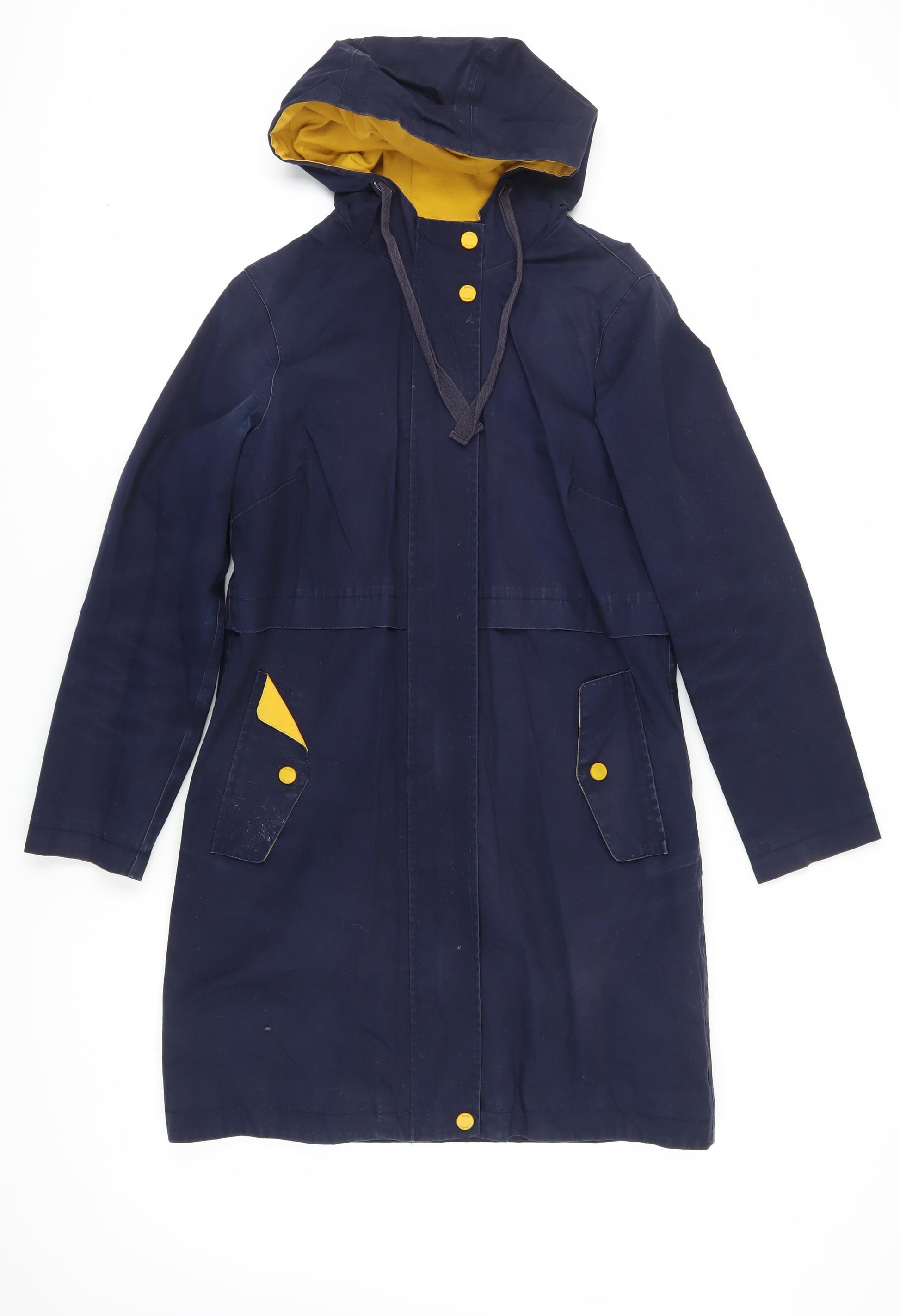 Discover timeless style and comfort with this Boden Women's Blue Parka Coat. Perfect for the cooler months of autumn and winter, this coat features a classic long design with a stylish hood, offering both functionality and elegance. Crafted from durable cotton canvas, it provides a regular fit that promises comfort and ease. Accompanied by convenient pockets and secured with stylish buttons, this parka is as practical as it is fashionable. The coat is lined with polyester, ensuring added warmth and protection against chilly winds. Its deep blue colour exudes a classic charm that can easily complement a variety of outfits, making it a versatile addition to your wardrobe. Whether you're heading out for a casual day out or a stroll in the park, this coat is your ideal companion. Embrace the perfect blend of fashion and function with this Boden parka coat, offering a quintessential look for every woman. Sized in UK 8, it’s tailored for regular fit, ensuring you look chic while staying cosy.