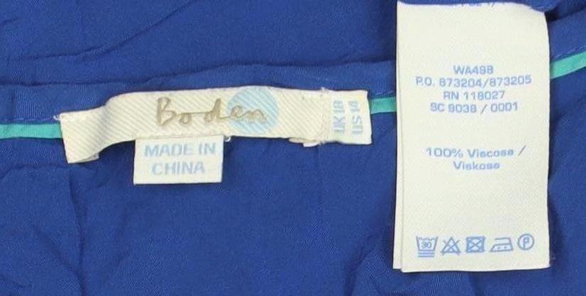 Elevate your summer wardrobe with this elegant Boden Women's Blue Tunic Blouse, crafted from 100% viscose for a lightweight and comfortable fit. This relaxed-fit blouse in a beautiful shade of blue features a round neckline and a sleeveless design, making it perfect for warm, sunny days. The blouse is accentuated with a charming button detail at the front, adding a touch of sophistication to its casual design. Suitable for a variety of casual occasions, this solid-patterned tunic will become a versatile staple in your closet. The woven fabric type ensures durability and a smooth texture, while the sleeveless and wide strap details enhance its airy feel. Ideal for summer, this tunic can be easily paired with jeans or shorts for a laid-back look. With its machine washable care instructions, maintaining this blouse is both easy and convenient. Despite being pre-owned, it remains in excellent condition, with minor creases present but no signs of wear, making it an excellent choice for those seeking style and value. Don't miss your chance to add this charming piece to your collection.
