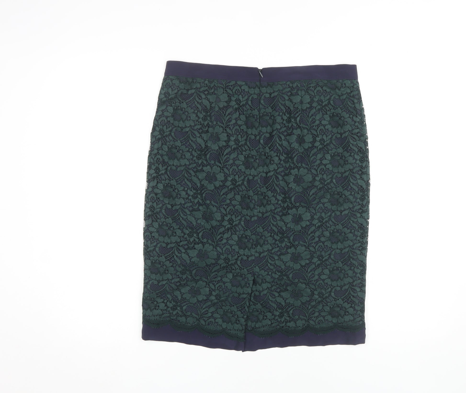 Discover the classic elegance of Boden with this exquisitely designed Women's Pencil Skirt. Crafted for sophisticated style, this skirt features a beautifully intricate floral lace overlay in a flattering green hue. The streamlined, straight cut and sophisticated design make it an ideal choice for both professional and stylish casual days. Made from a premium blend of Nylon and Viscose, this skirt promises not only style but comfort and durability. Designed in a regular size 12, it features a discreet zip closure at the back for ease of wear. Perfect for any occasion, understand the delicate care with dry clean only to maintain its stunning appearance. Exuding timeless charm and elegance, it's a must-have addition to your wardrobe.