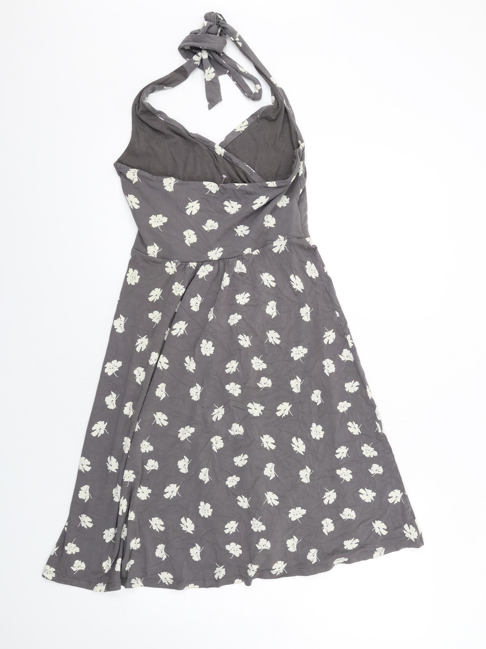 Womens Grey Floral Viscose A-Line Size 10 Halter Pullover